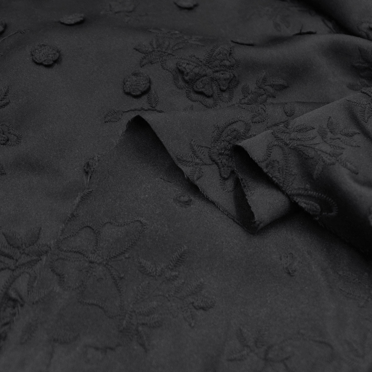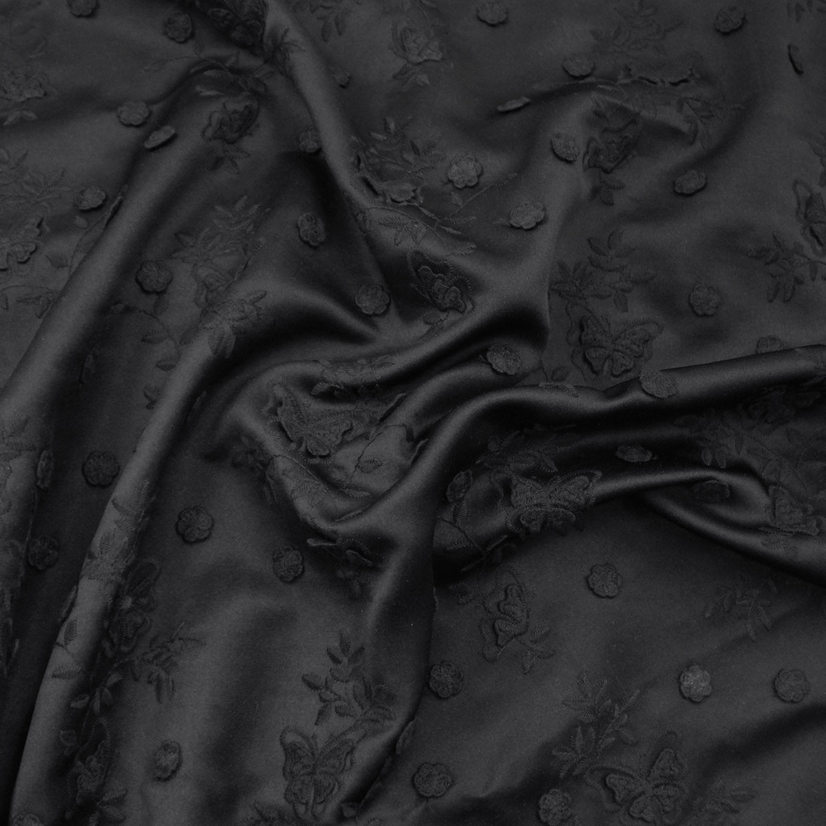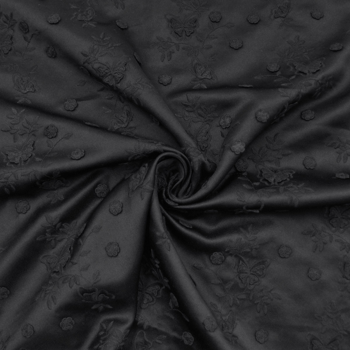 Атласная ткань с цветочной аппликацией обладает следующими свойствами: