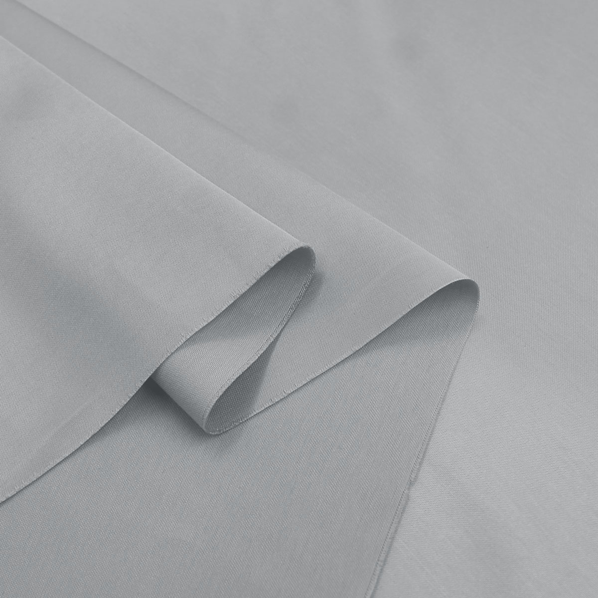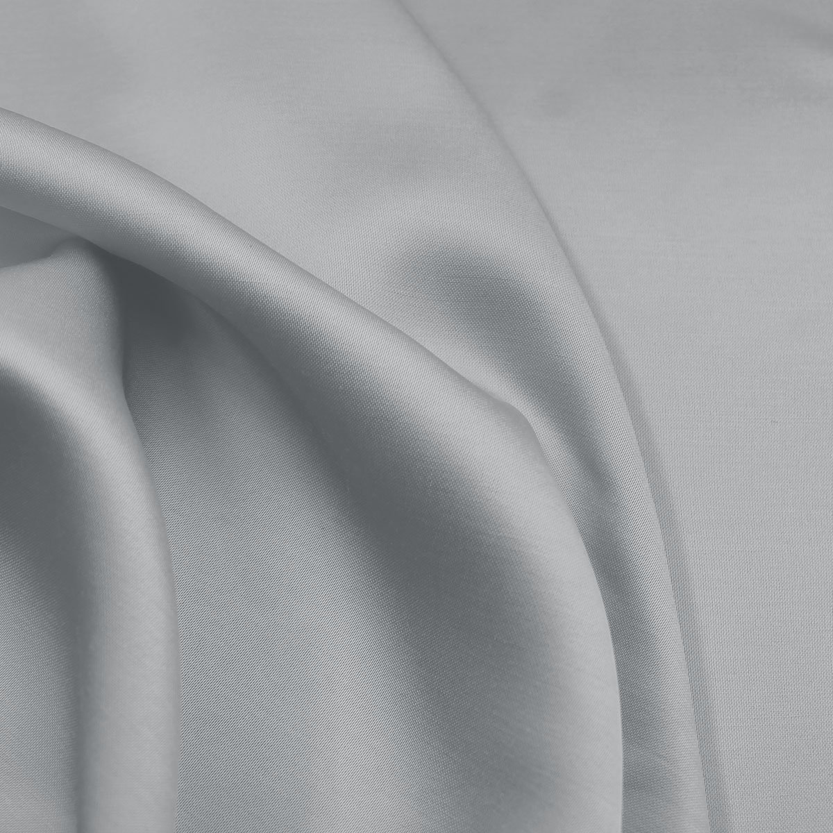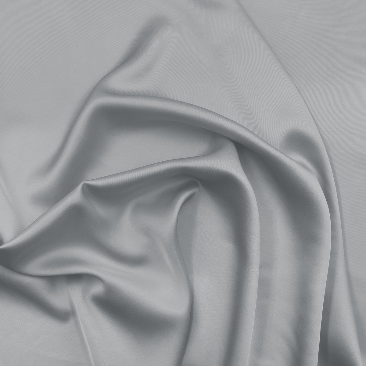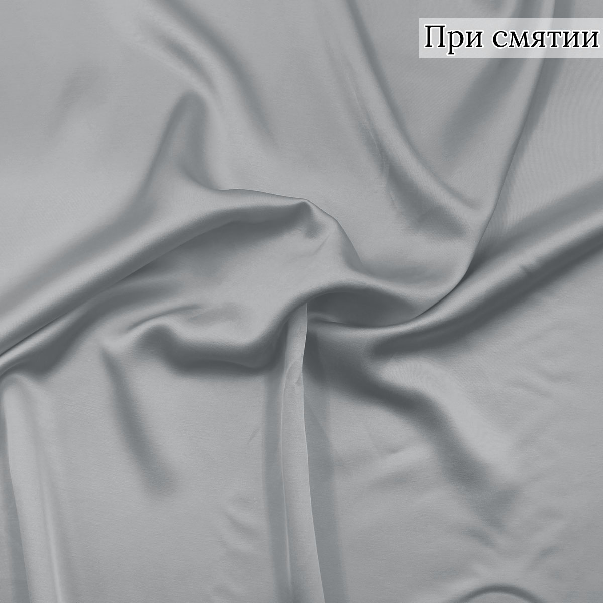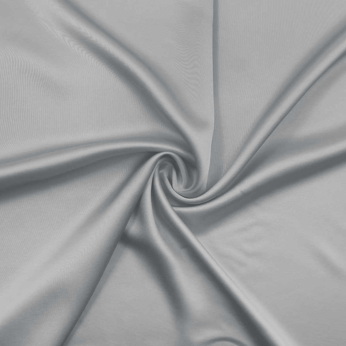 Атласная ткань светло-серого цвета долго сохраняет презентабельный вид, с легкостью драпируется. Атлас подходит для пошива блузок, топов, юбок, брюк, платьев, легких праздничных костюмов, пижам, косынок и иных изделий.