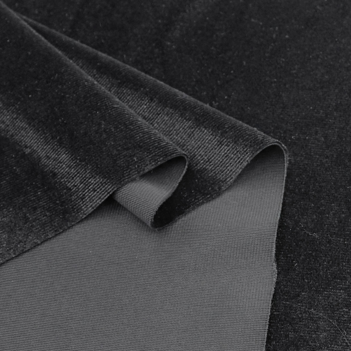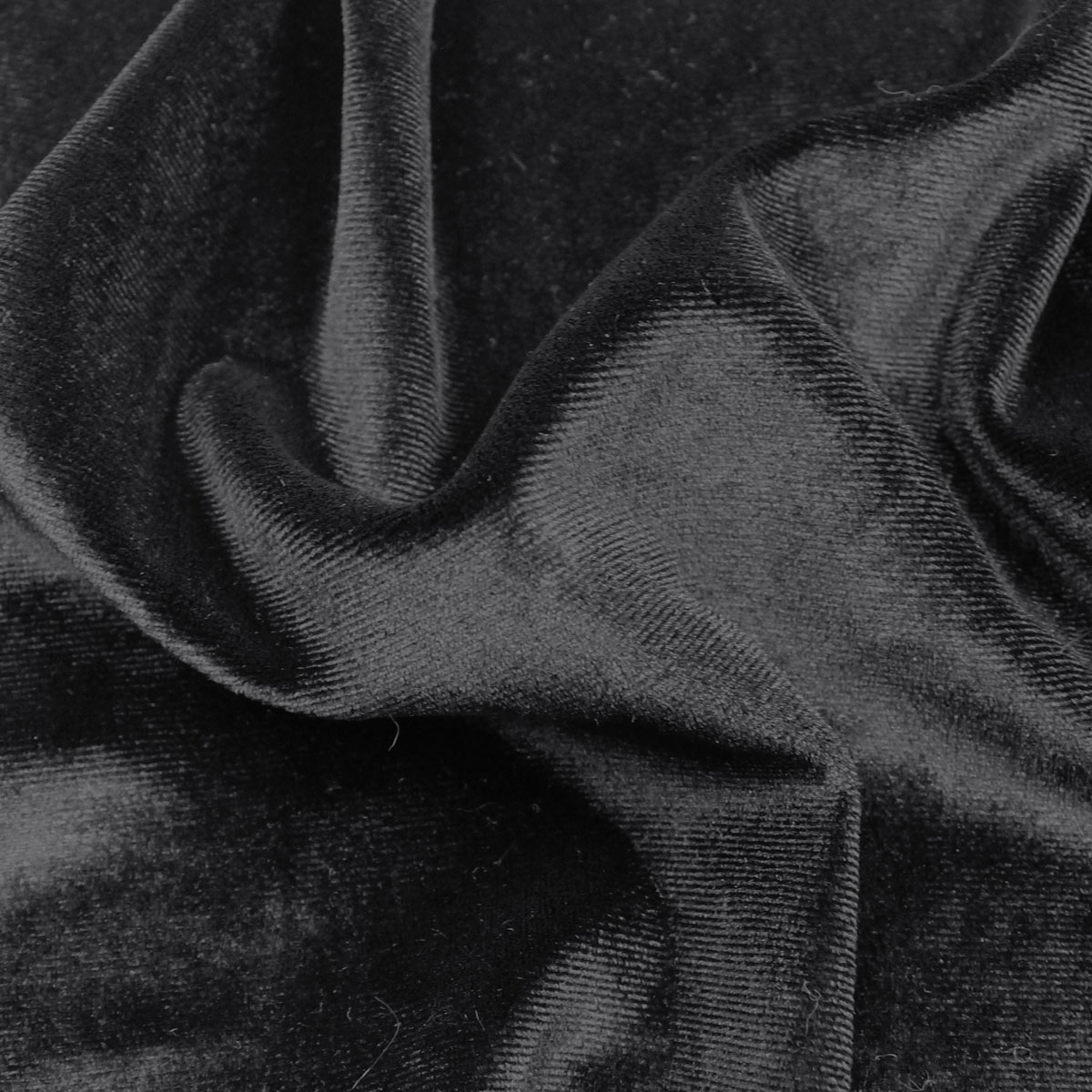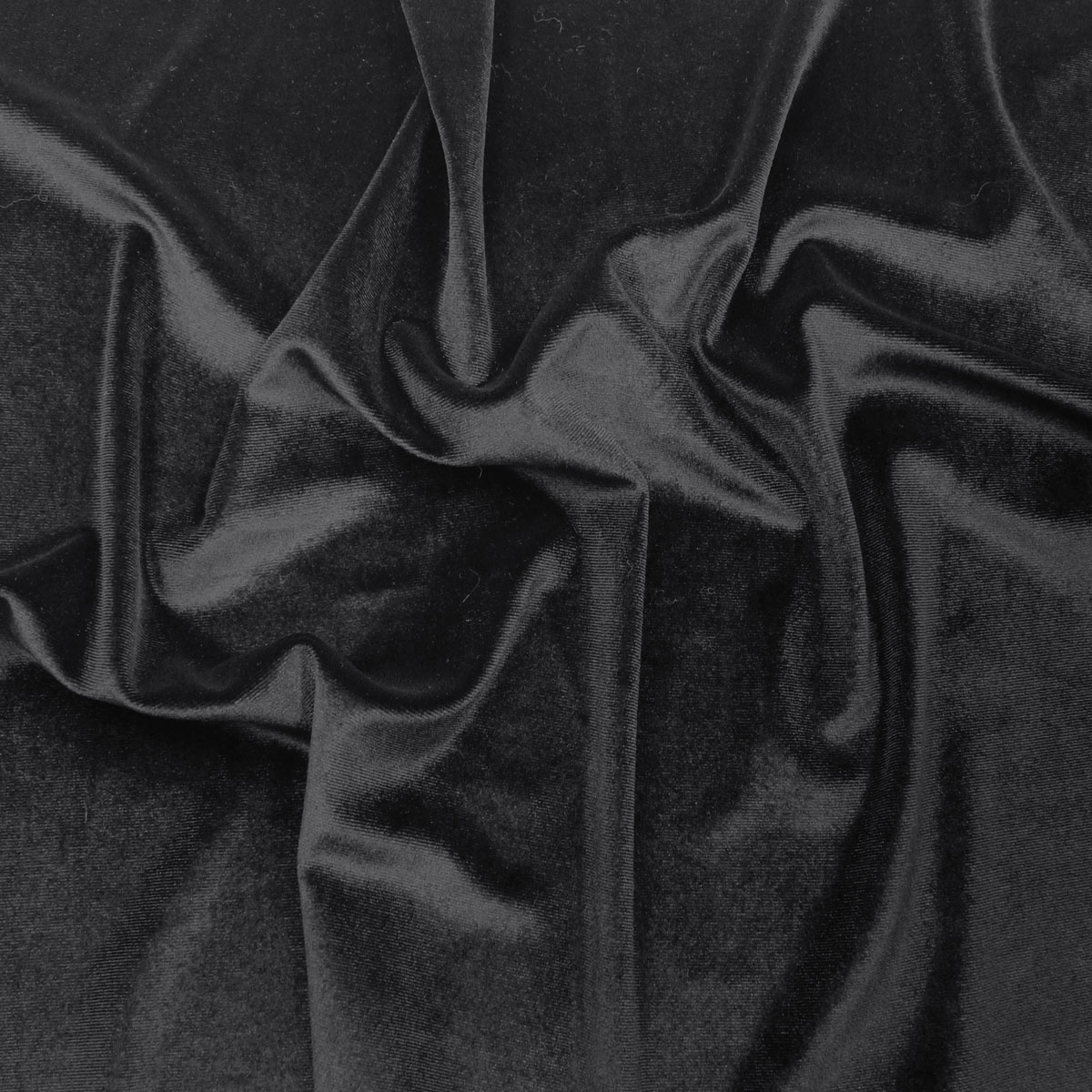 Бархатная ткань черного цвета — это роскошный и насыщенный материал, который часто используется для создания элегантной и торжественной одежды.