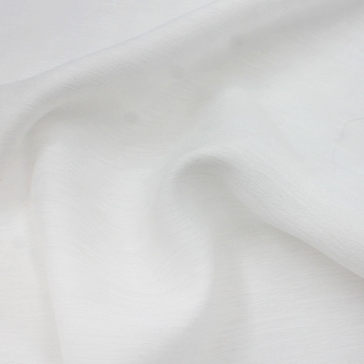 Ткань батист со льном белый тонкая, нежная и приятная к телу. Она сделана из тонких скрученных волокон и обладает следующими свойствами: