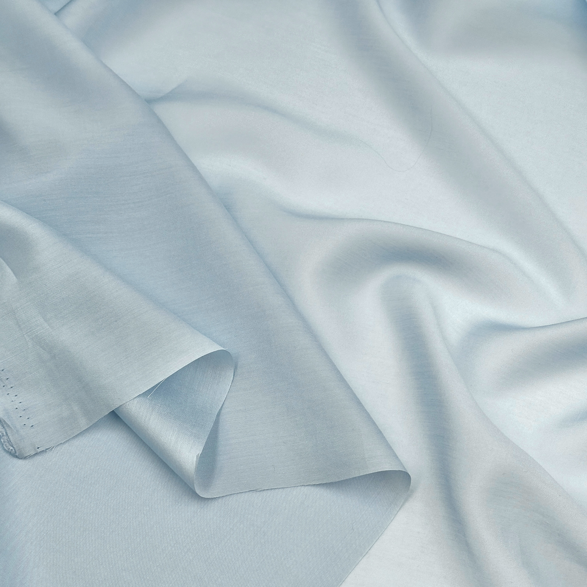 Ткань батист светло-голубая, состоящий на 70% из тенселя и на 30% из хлопка, представляет собой легкую и воздушную ткань, которая сочетает в себе лучшие качества обоих материалов. Тенсель придает ткани гладкость и блеск, а хлопок обеспечивает прочность и комфорт при носке.