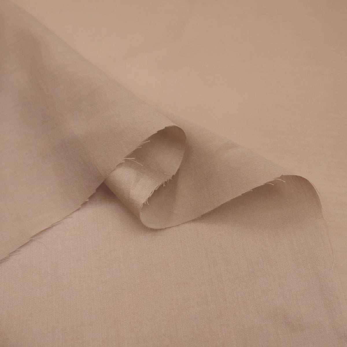 Ткань батист бежевая, состоящая на 70% из тенселя и на 30% из хлопка, представляет собой легкую и воздушную ткань, которая сочетает в себе лучшие качества обоих материалов. Тенсель придает ткани гладкость и блеск, а хлопок обеспечивает прочность и комфорт при носке.