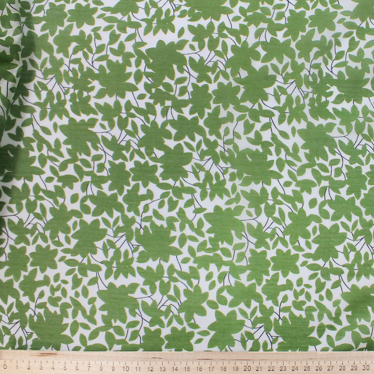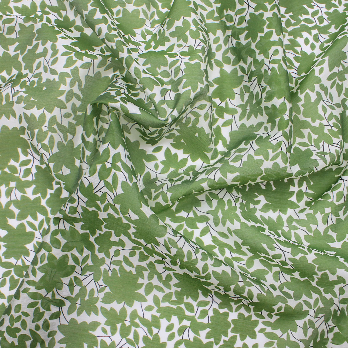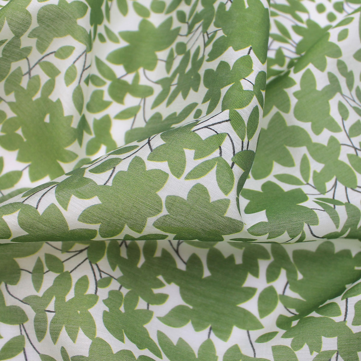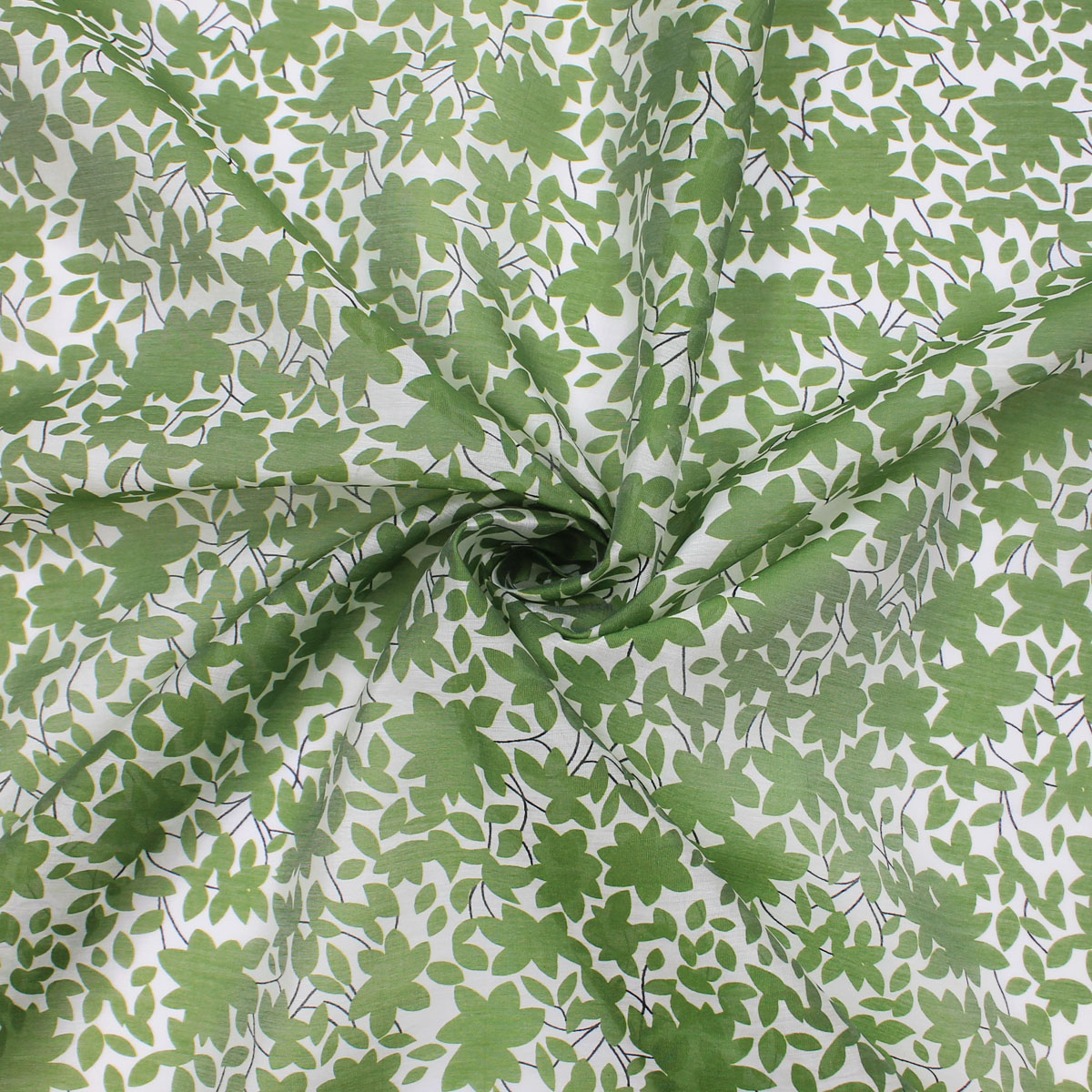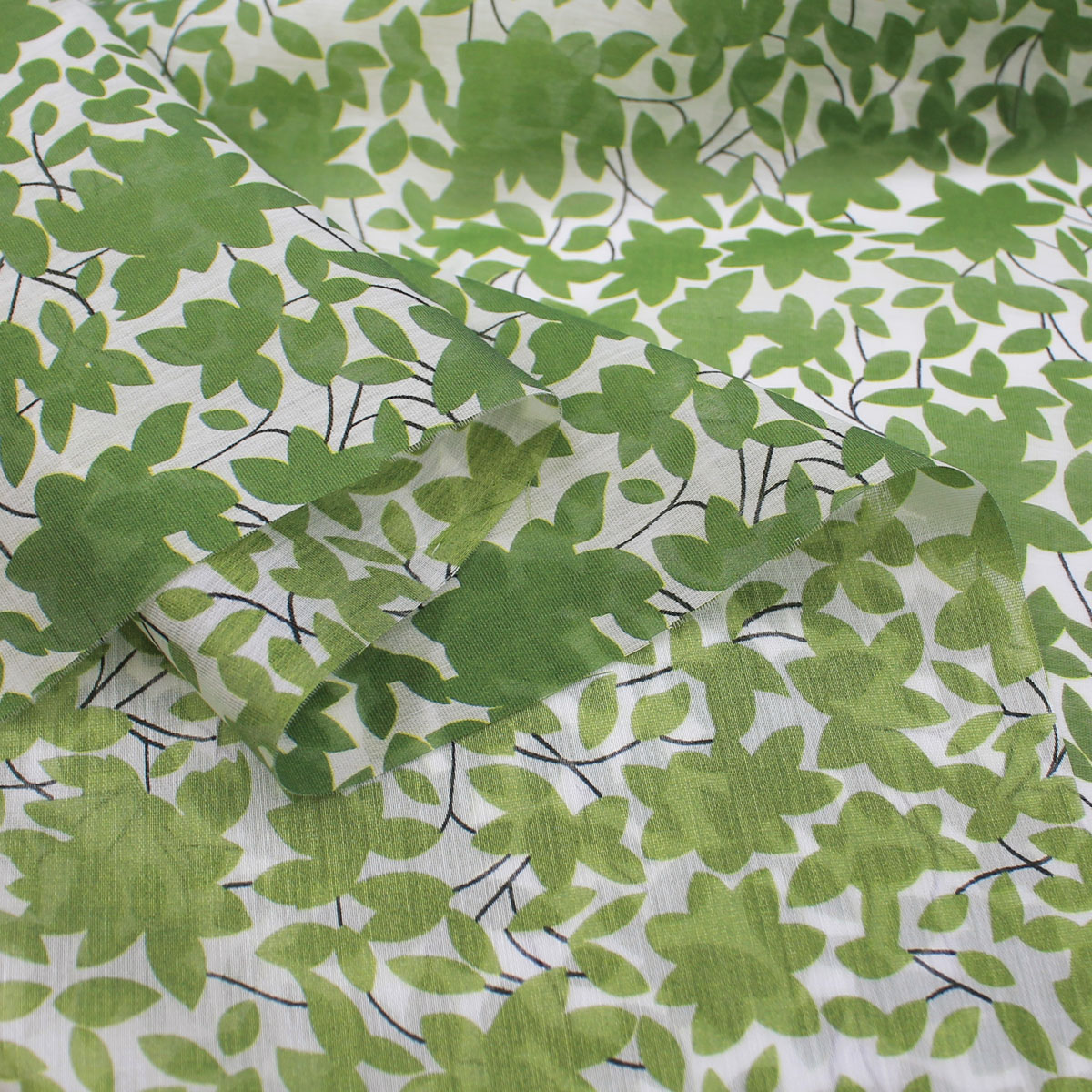Ткань батист с зелеными листьями