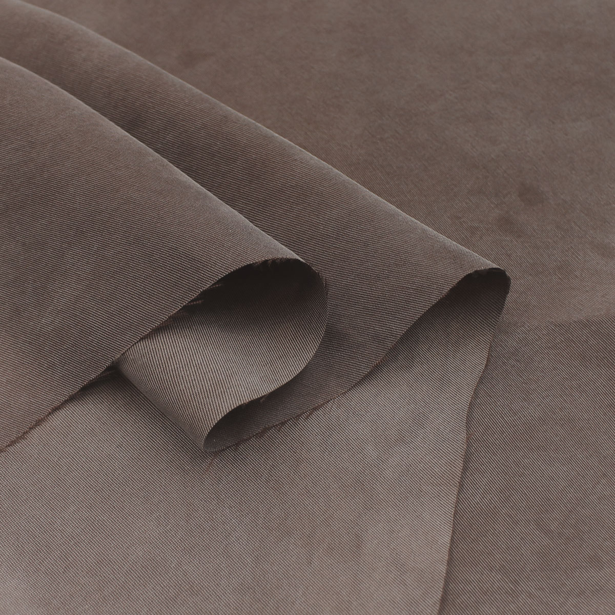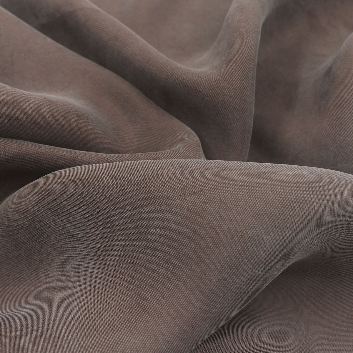 Ткань купра цвета горького шоколада выглядит элегантно и стильно. Благодаря уникальному способу плетения ткань имеет прекрасный блеск и нежное, почти бархатное ощущение при прикосновении.