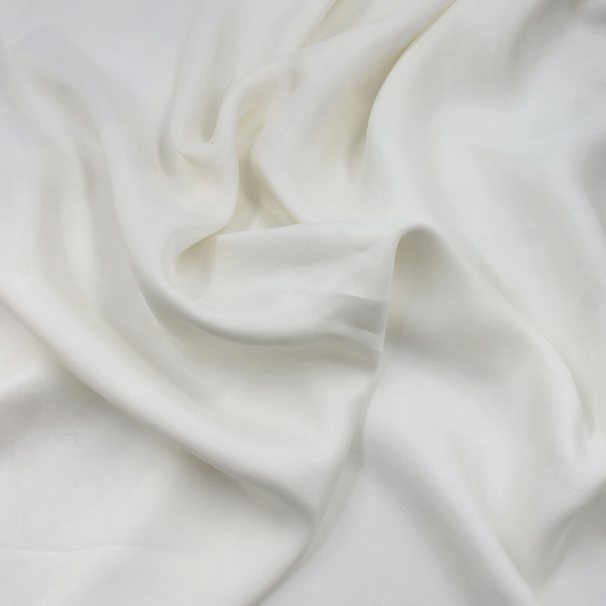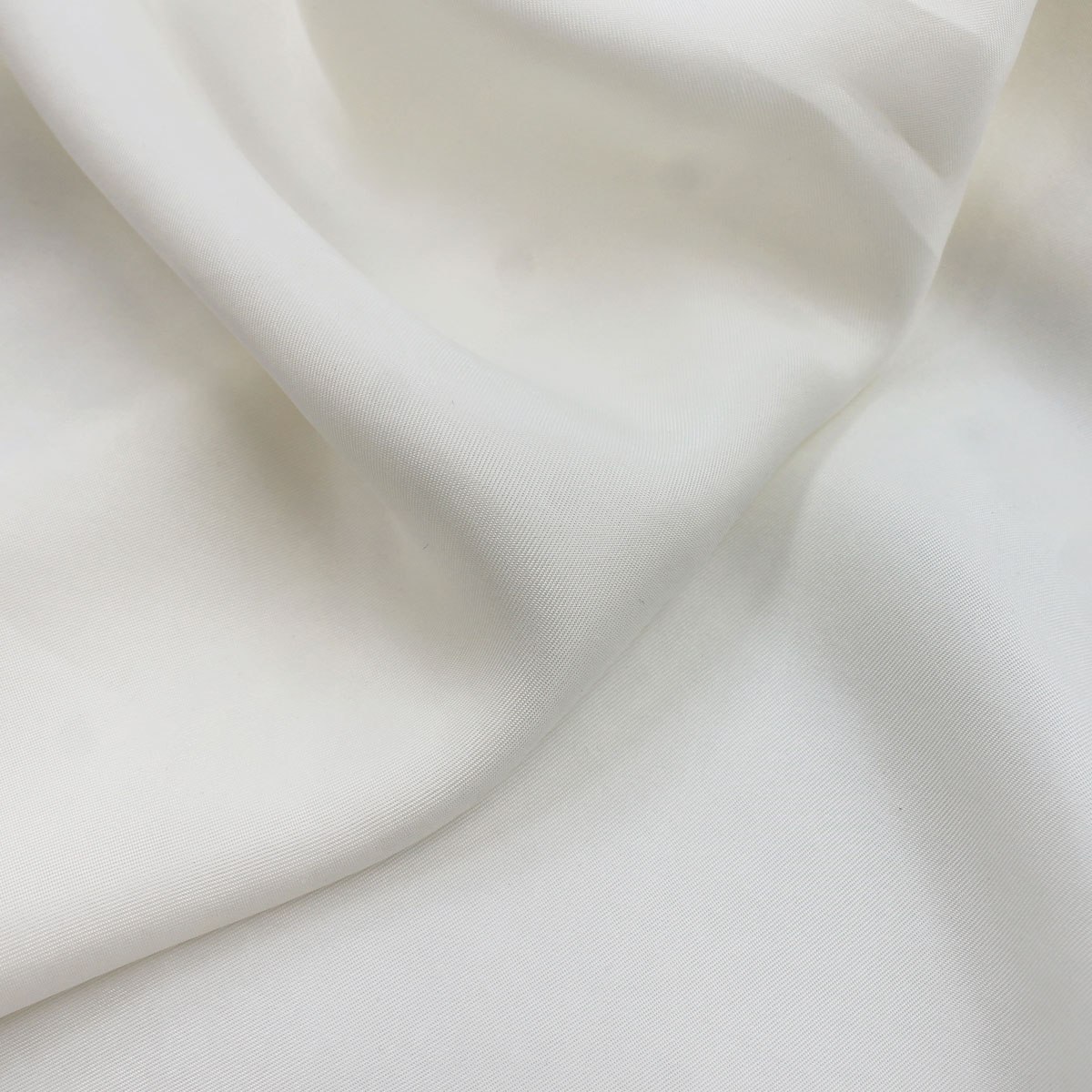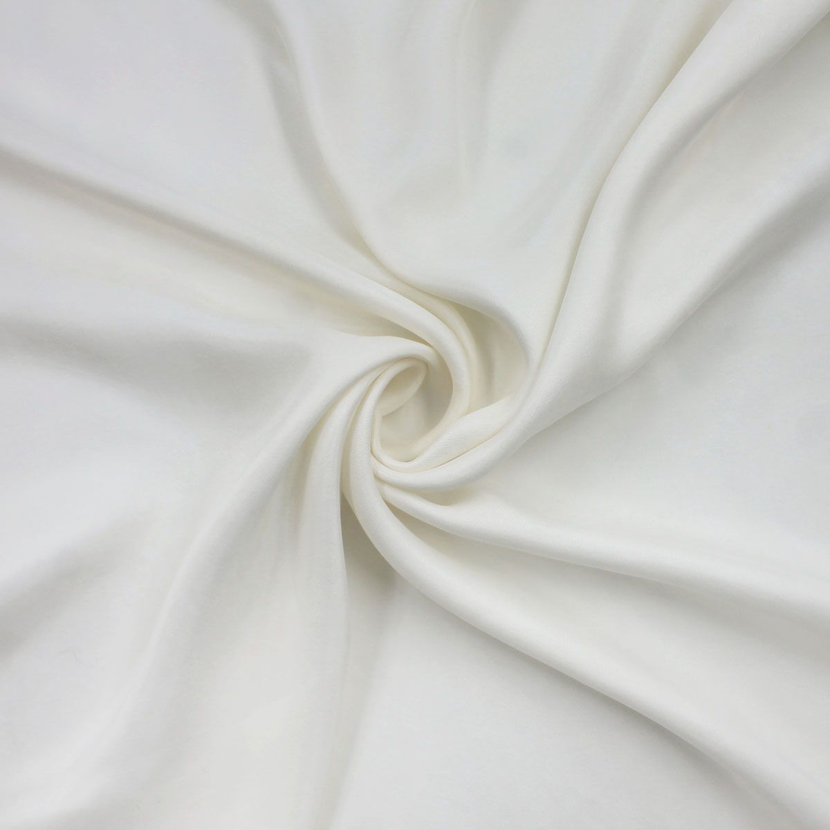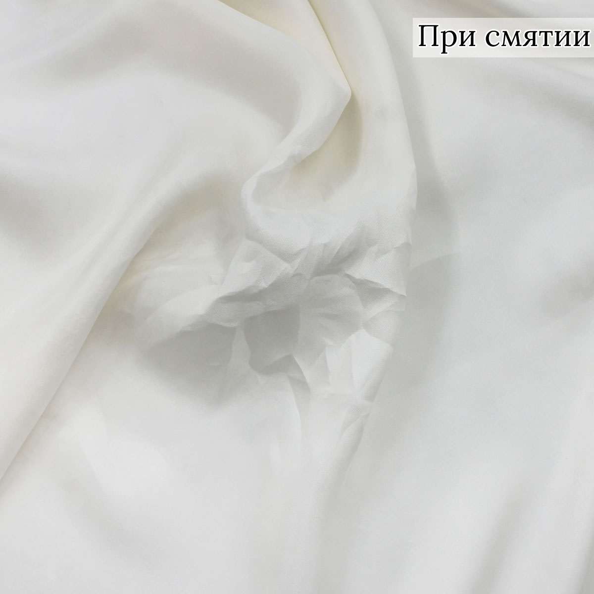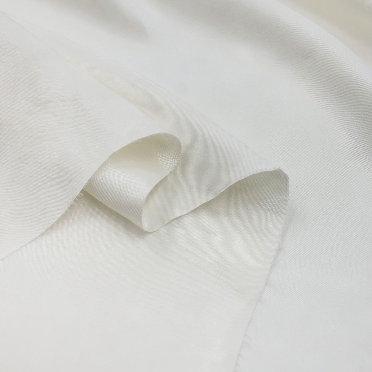 Ткань купра молочного цвета выглядит элегантно и стильно. Благодаря уникальному способу плетения ткань имеет прекрасный блеск и нежное, почти бархатное ощущение при прикосновении.