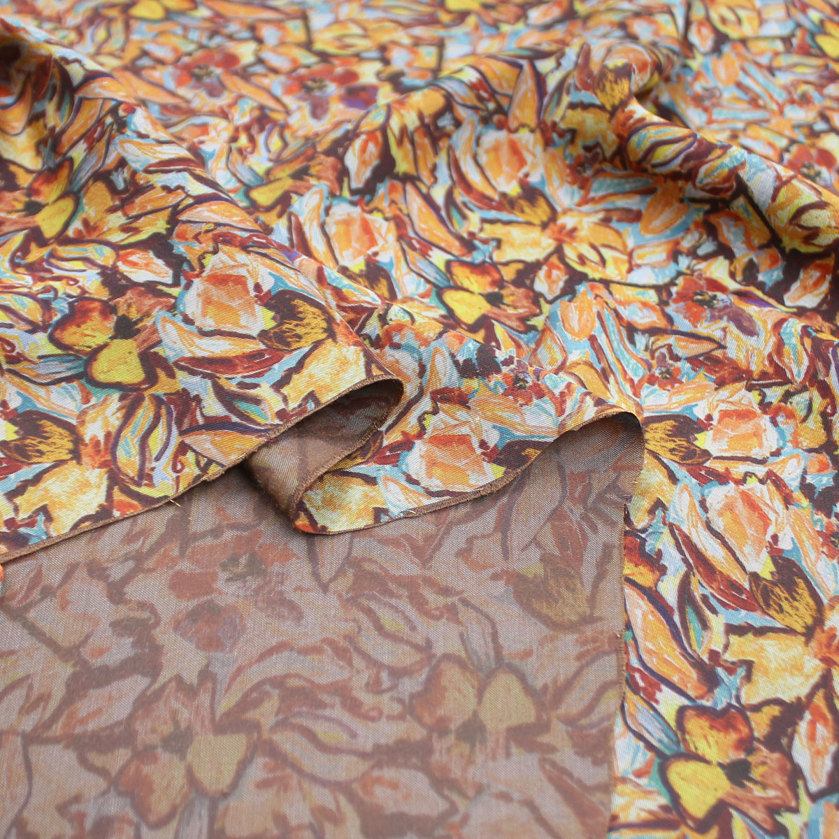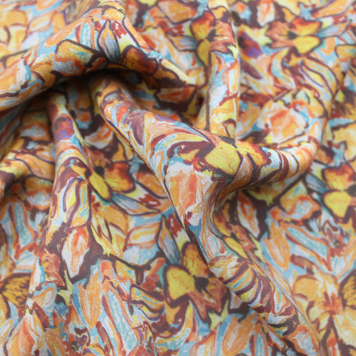 Искусственный шелк с абстрактным принтом - идеальный выбор для любителей стильных и качественных вещей. Она не только приятна на ощупь, но и изящна.