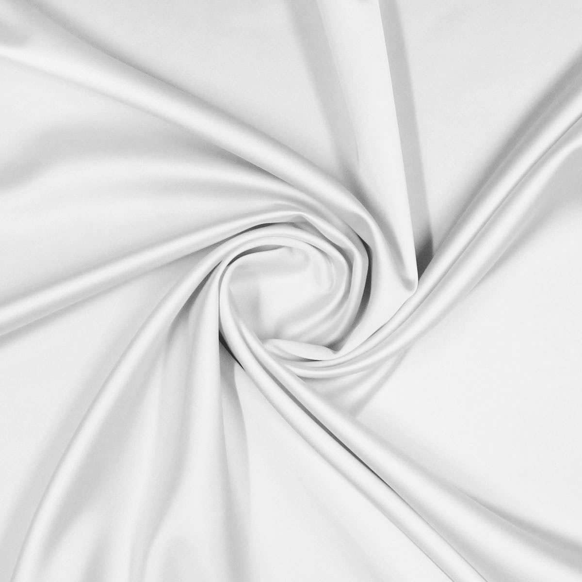 Искусственный шелк белого цвета - элегантный синтетический материал отлично дополнит ваши наряды. Он обладает нежным блеском, шелковистостью, легкостью, прекрасно драпируется, оживляется при движении и добавляет настроения вашему облику.