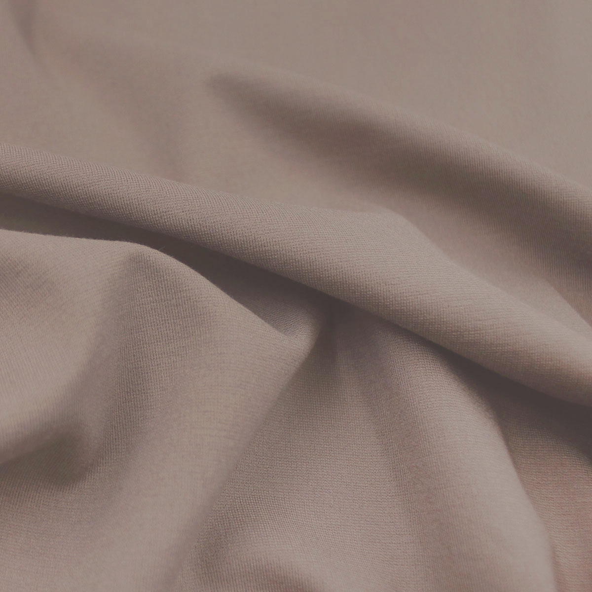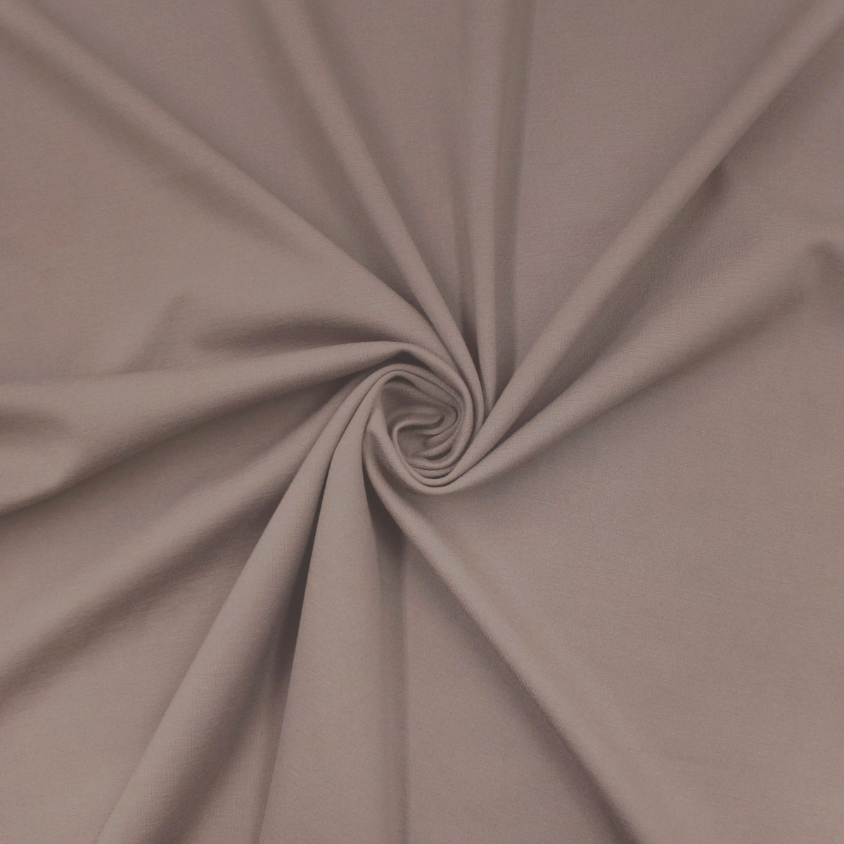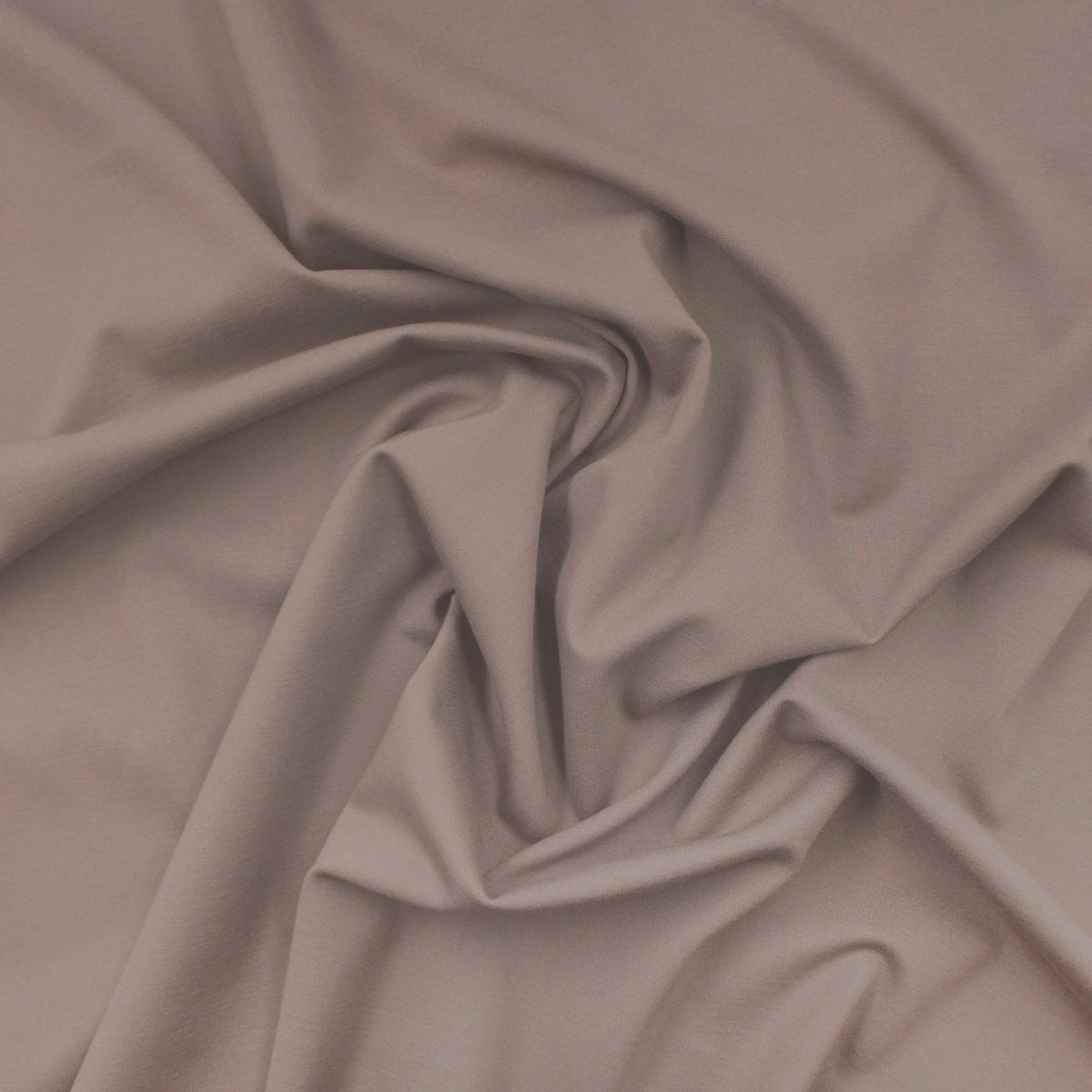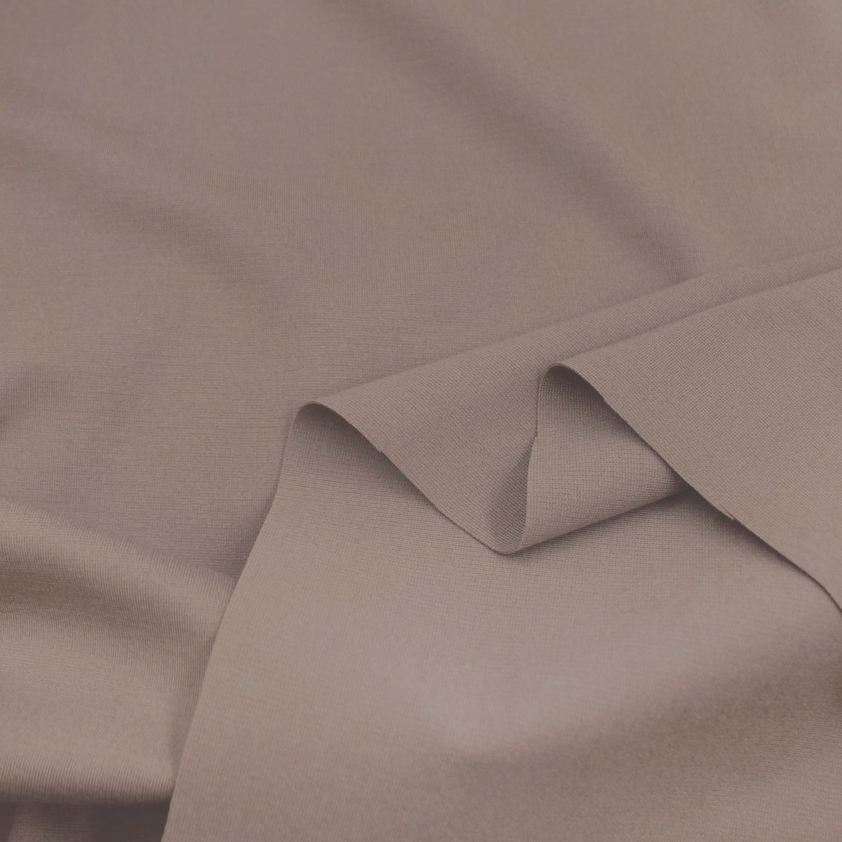 Трикотаж Джерси цвета какао отличается плотностью и эластичностью. Она хорошо сохраняет форму изделия, очень приятная на ощупь, гладкая и мягкая, на 67% состоит из вискозы.