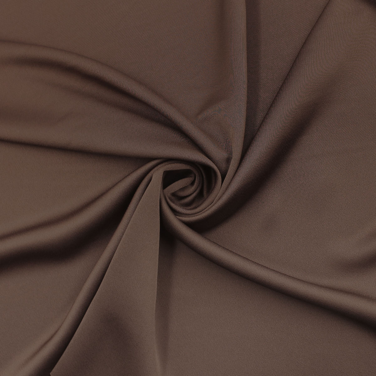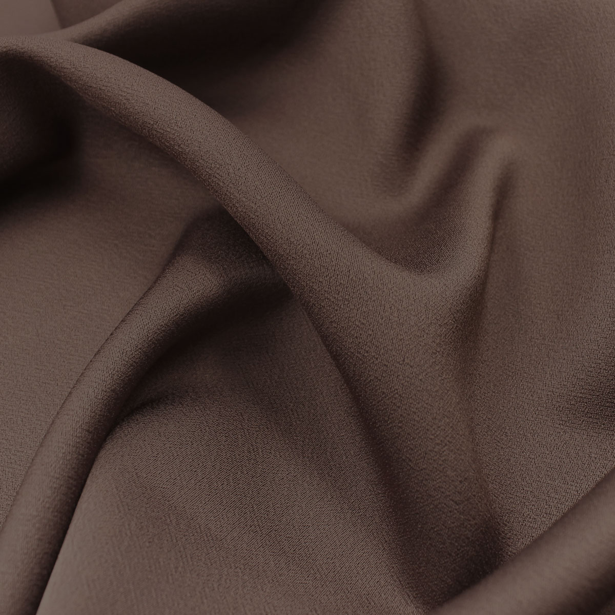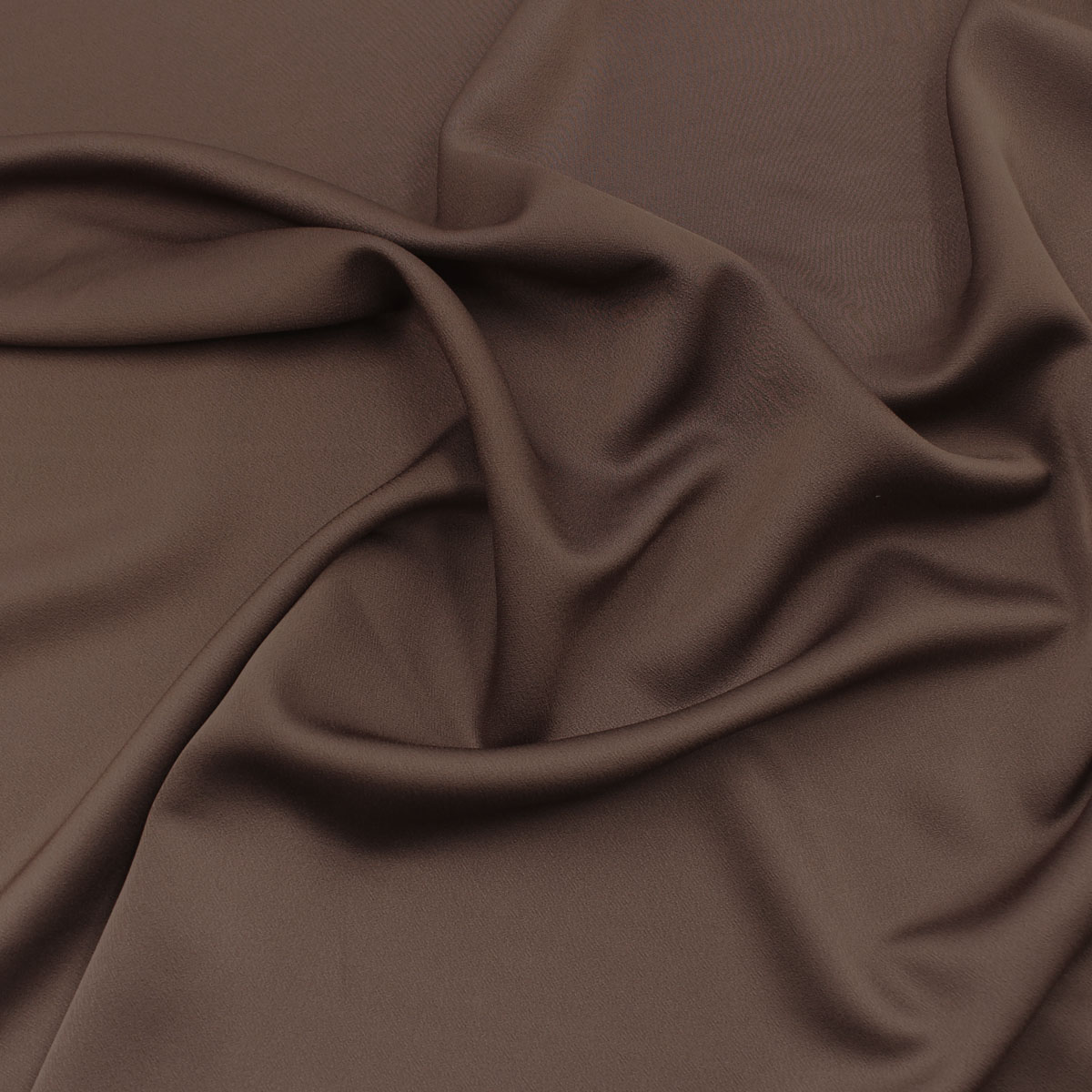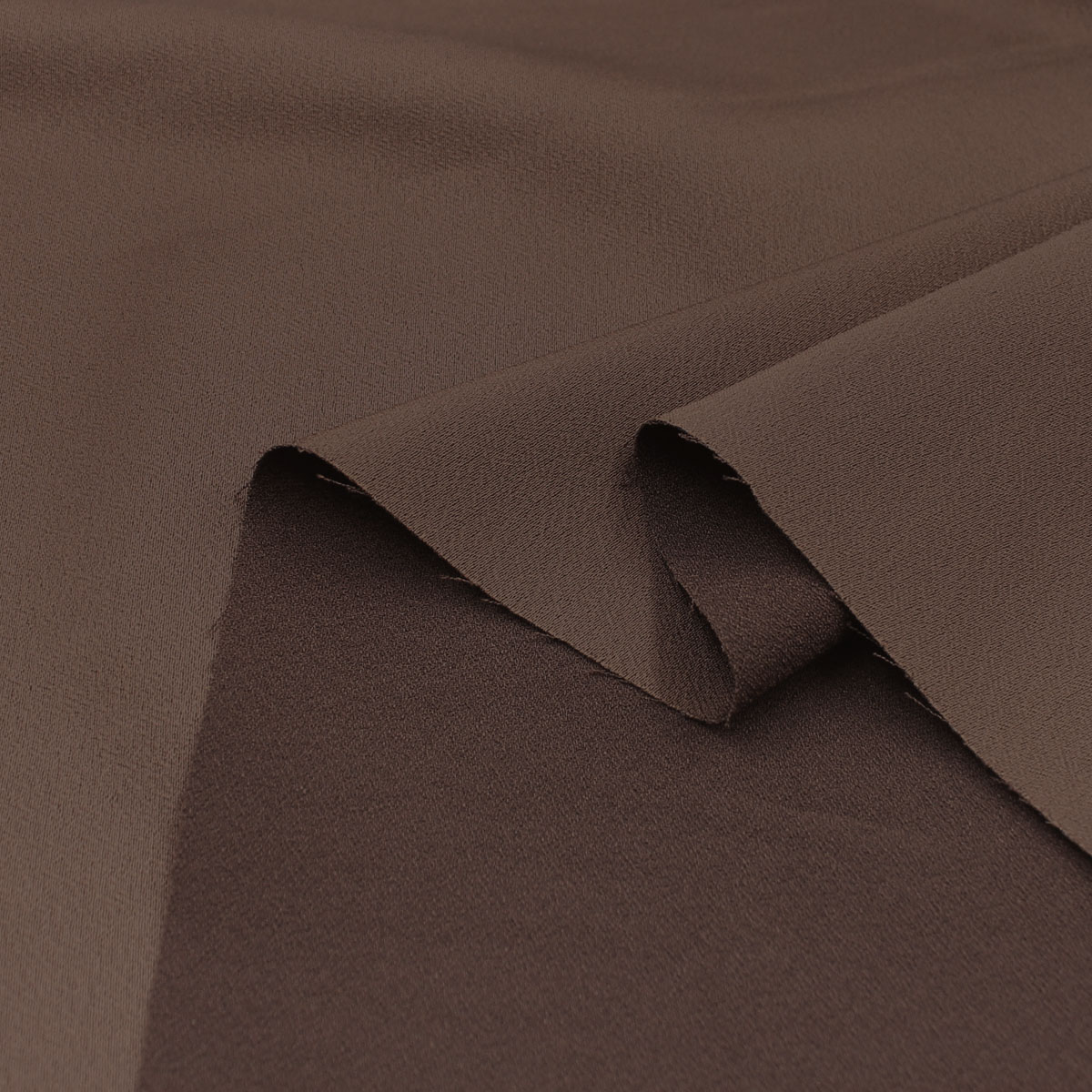 Креп шоколадного цвета с составом 98% полиэстер, 2% эластан - это легкая ткань, которая будет хорошо драпироваться и подходить для различных видов одежды.