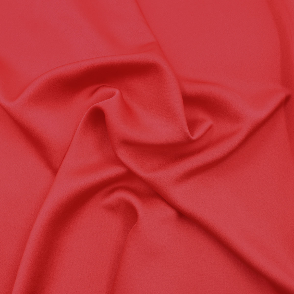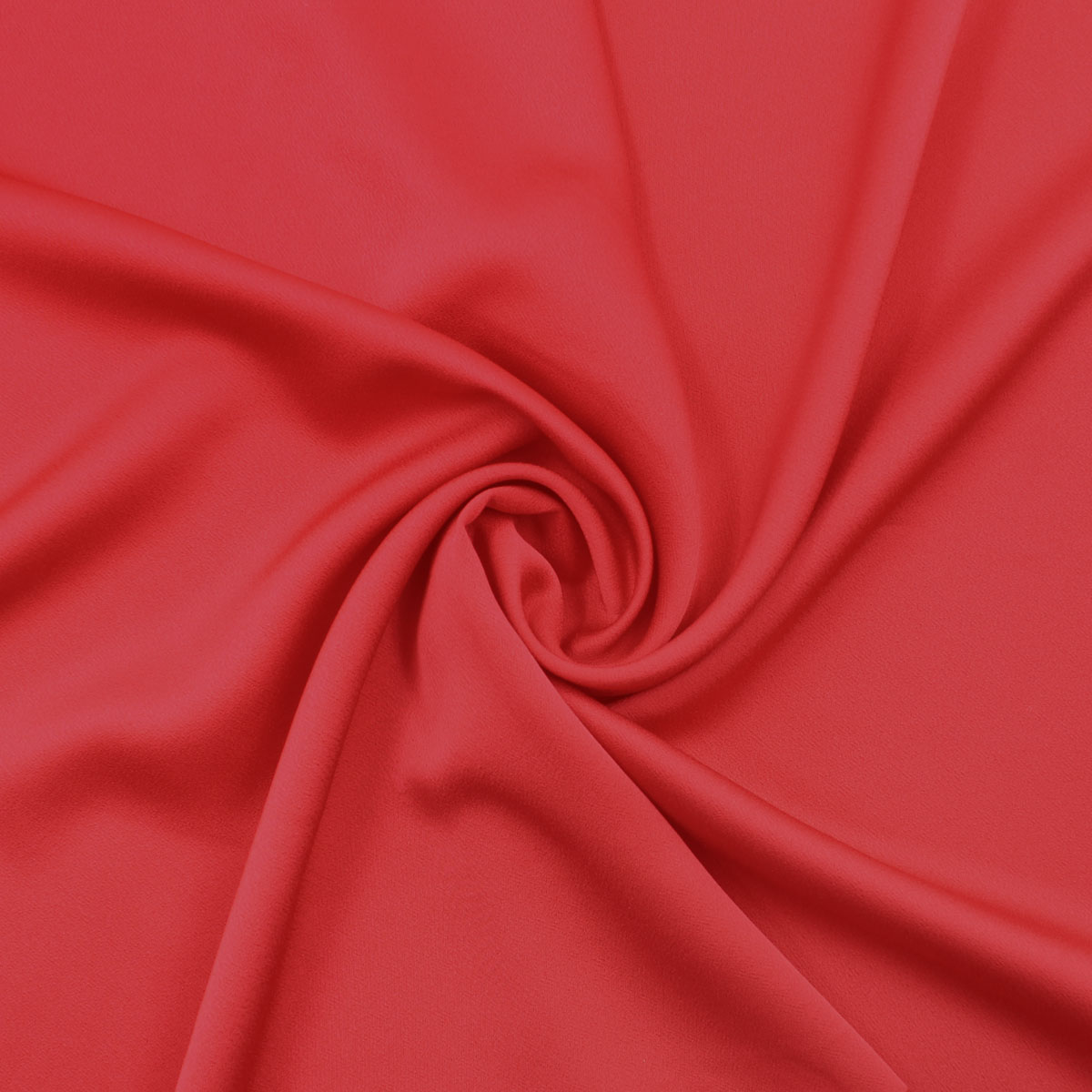 Ткань красная креп с составом 98% полиэстер и 2% эластан - это легкая и немного эластичная ткань, которая будет хорошо драпироваться и подходить для различных видов одежды.
