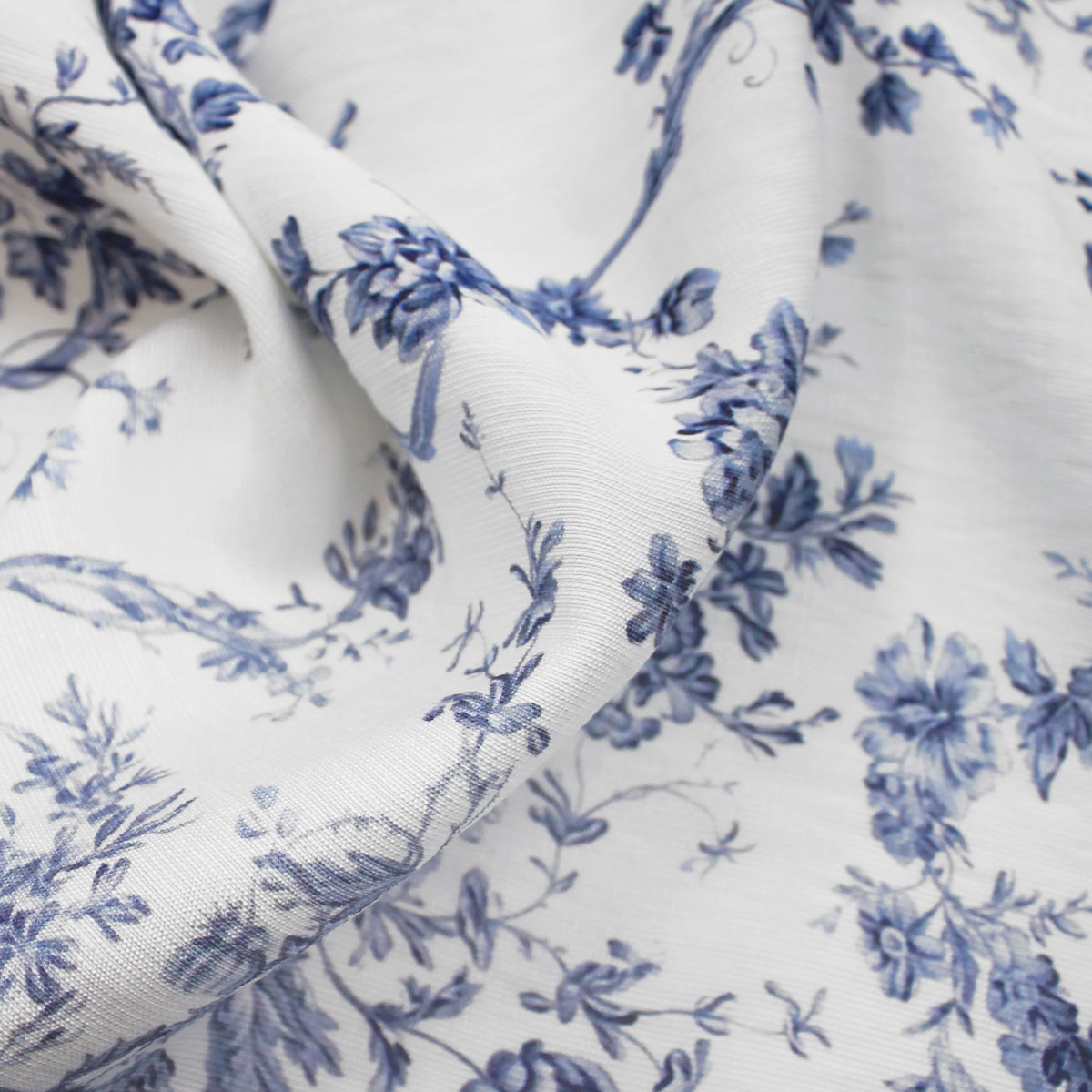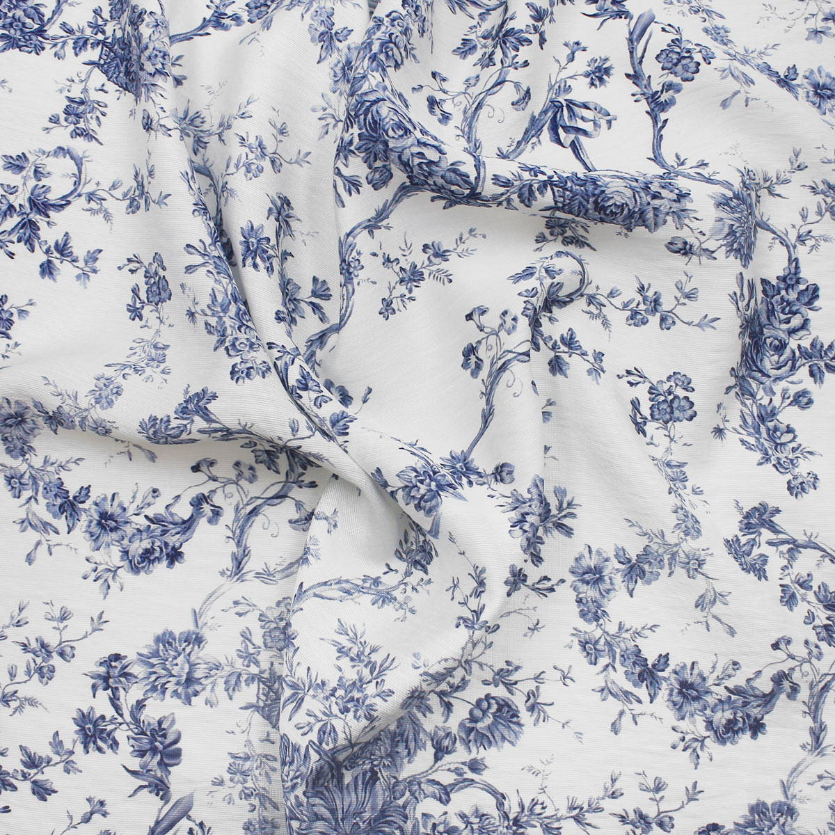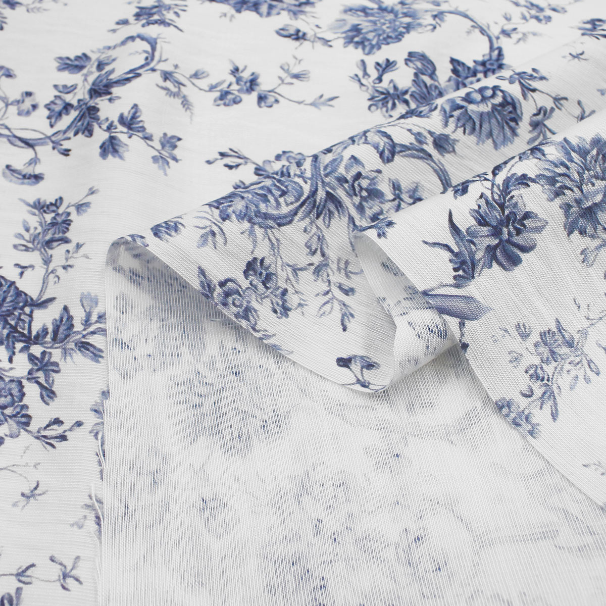 Прекрасная ткань для эффектного наряда. Материал сине-белого цвета с цветочным принтом выглядит элегантно и оригинально. Муслин считается комфортной тканью, в которой удобно находиться в жаркую погоду.