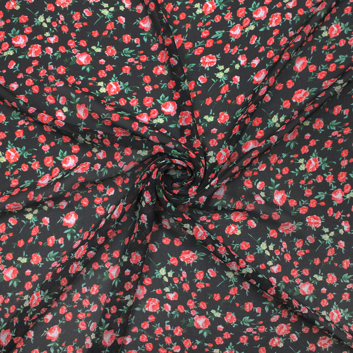 Ткань шифон в розочки из 100% полиэстера - это легкая и немного эластичная ткань, которая будет хорошо драпироваться и подходить для различных видов одежды.
