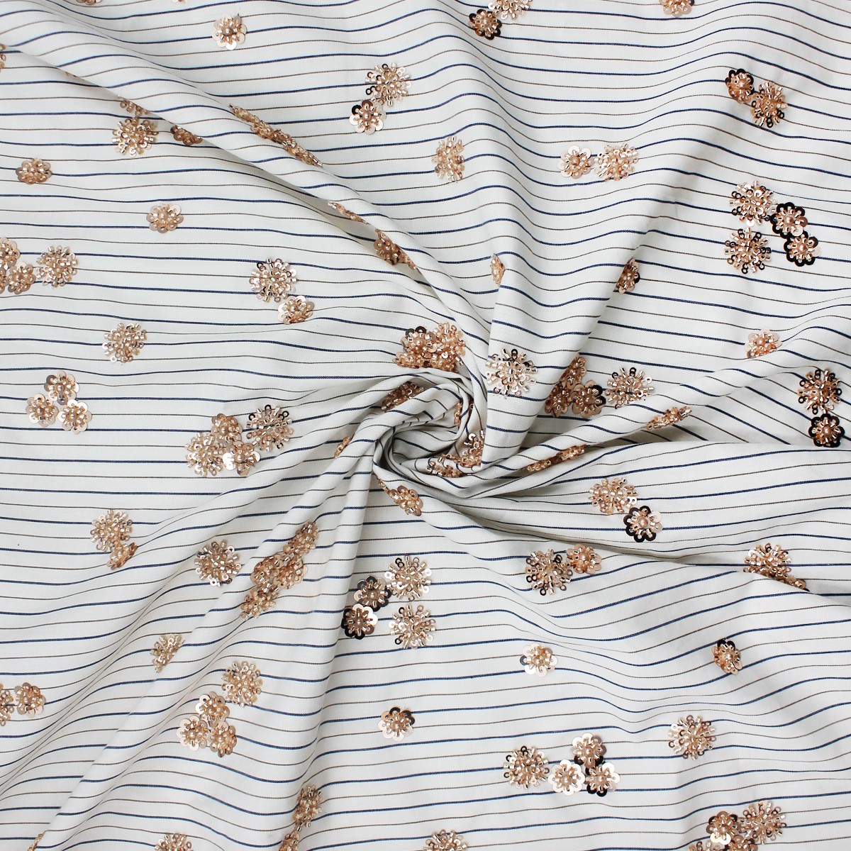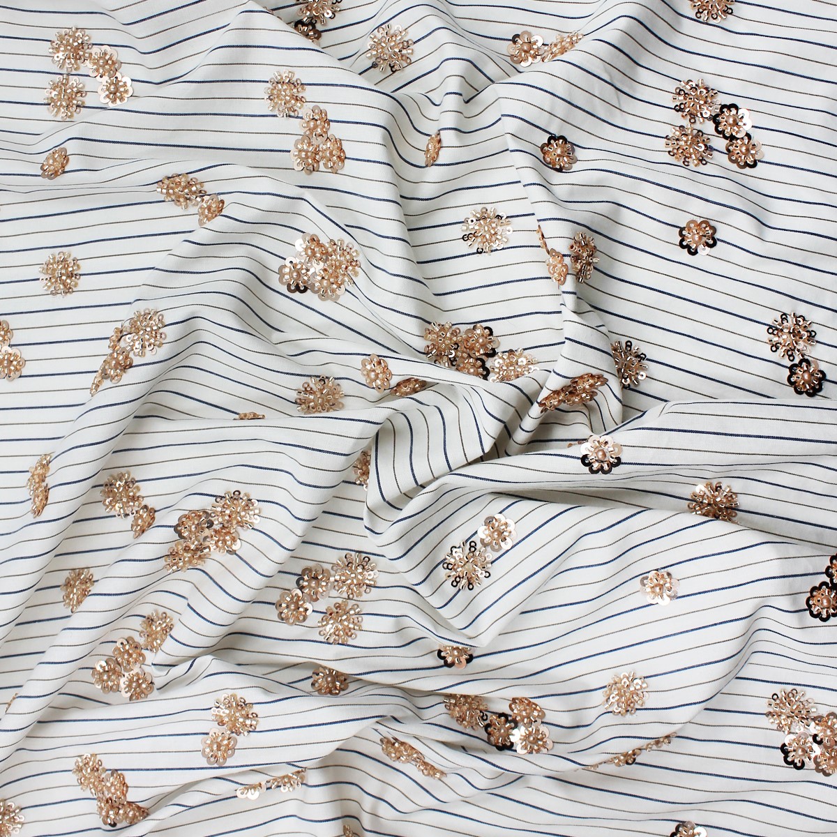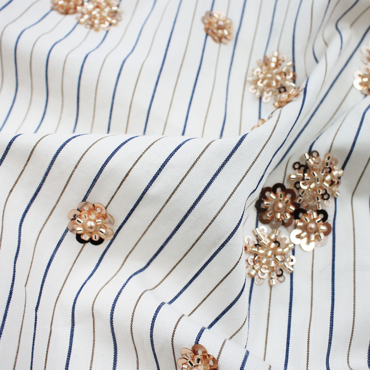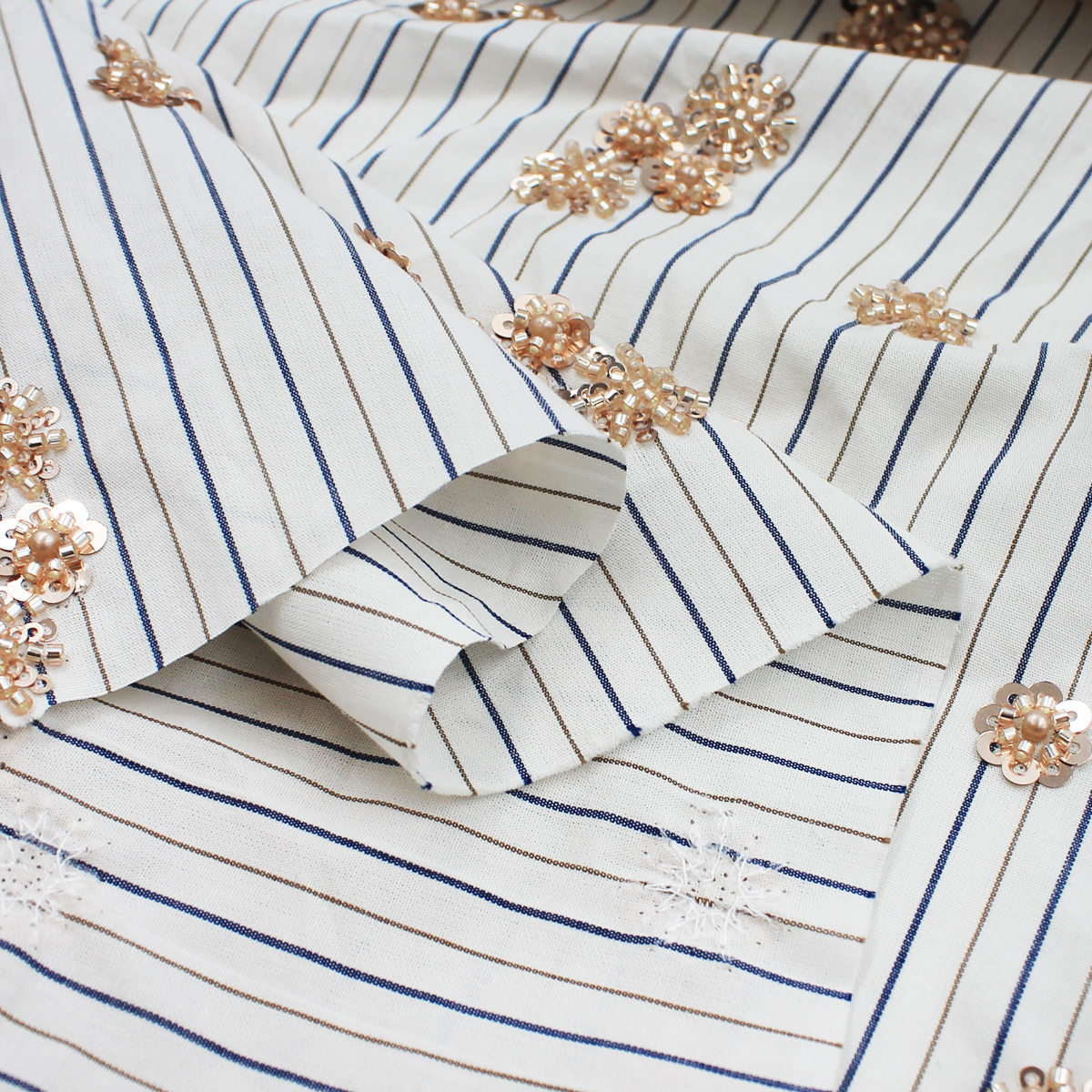 Ткань в полоску с бежевой вышивкой — это прекрасный выбор для создания легкой и женственной одежды. Вот несколько идей, что можно сшить из такой ткани: