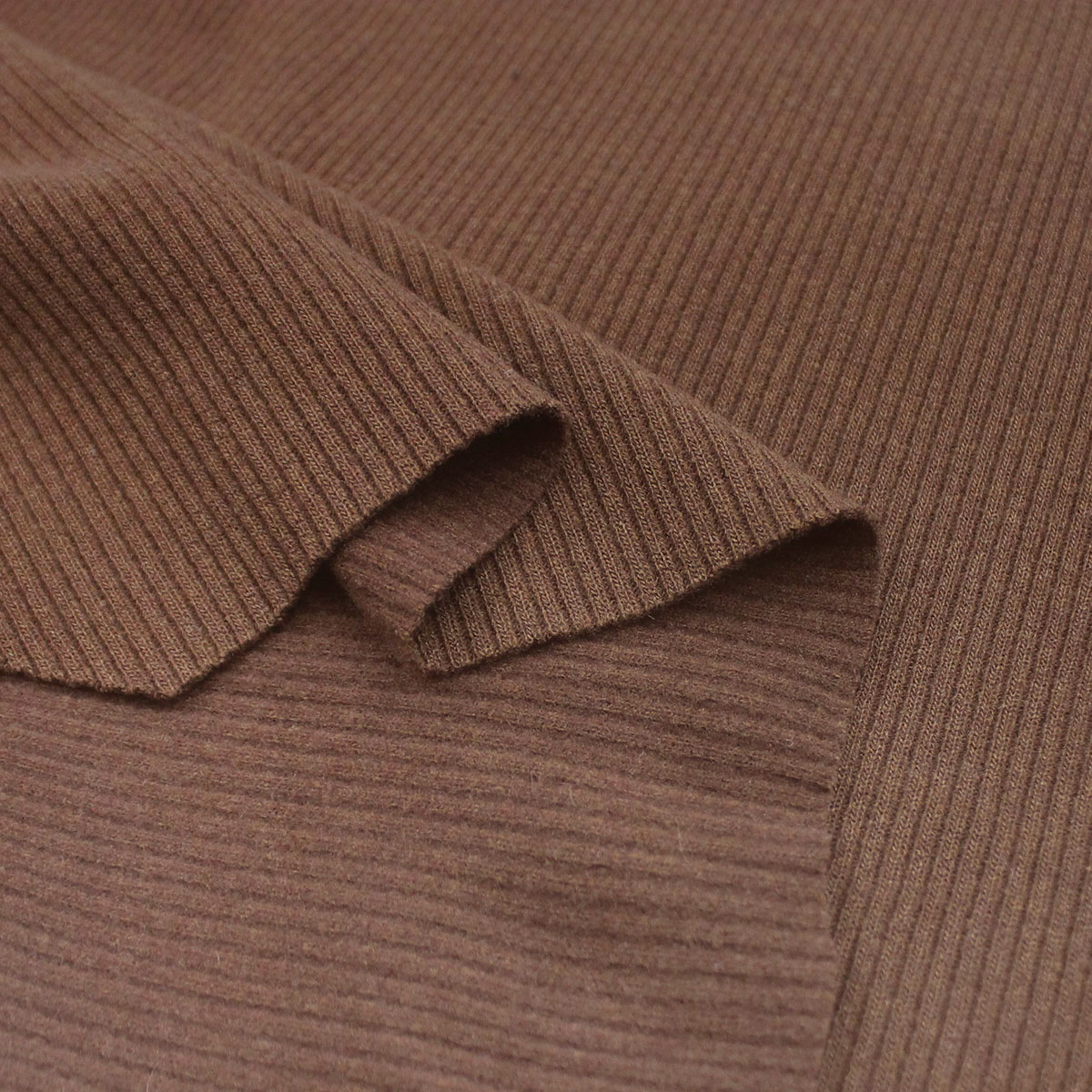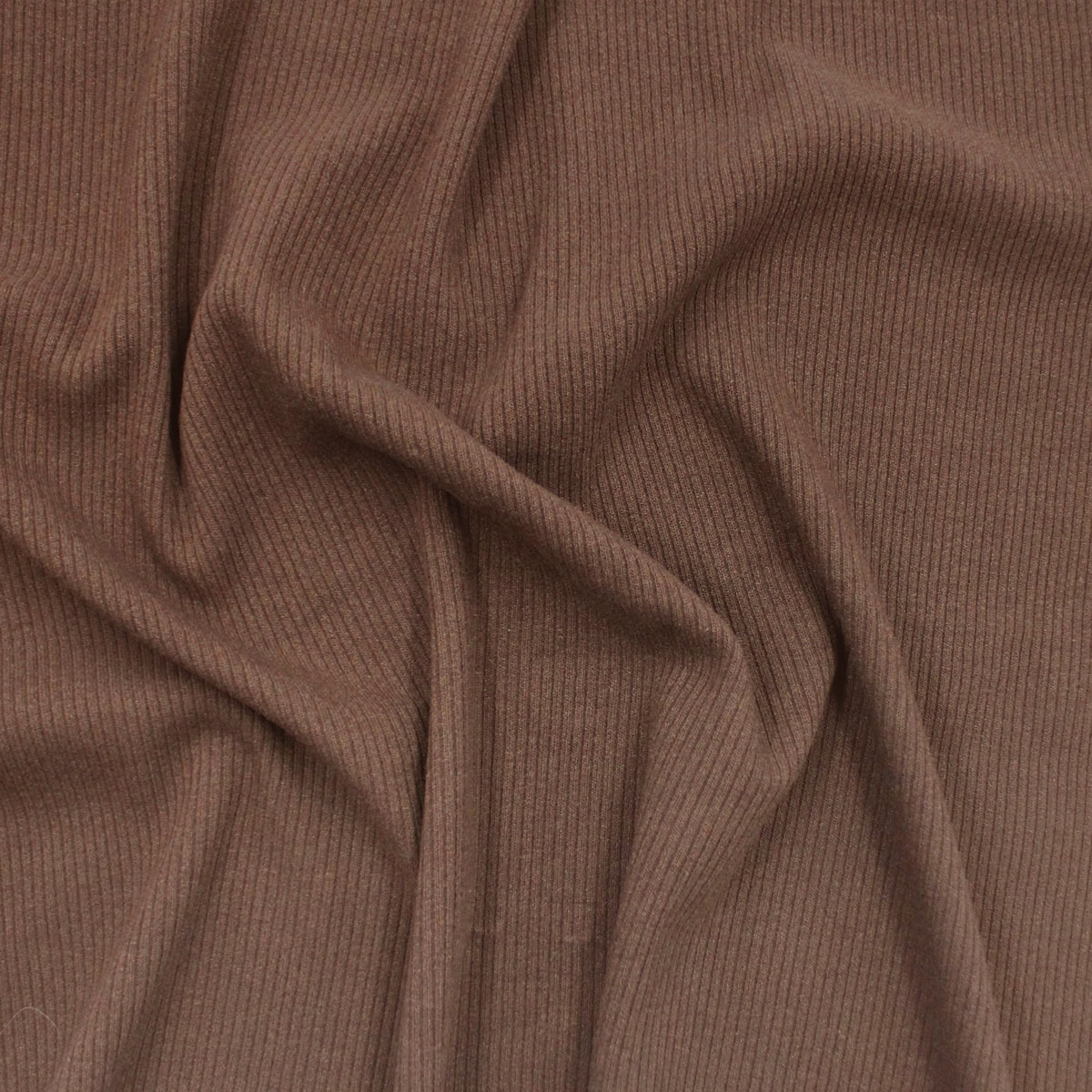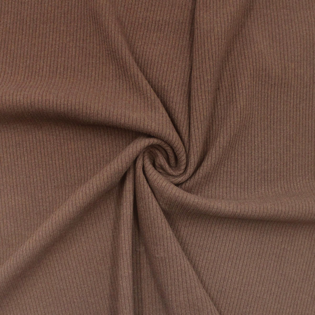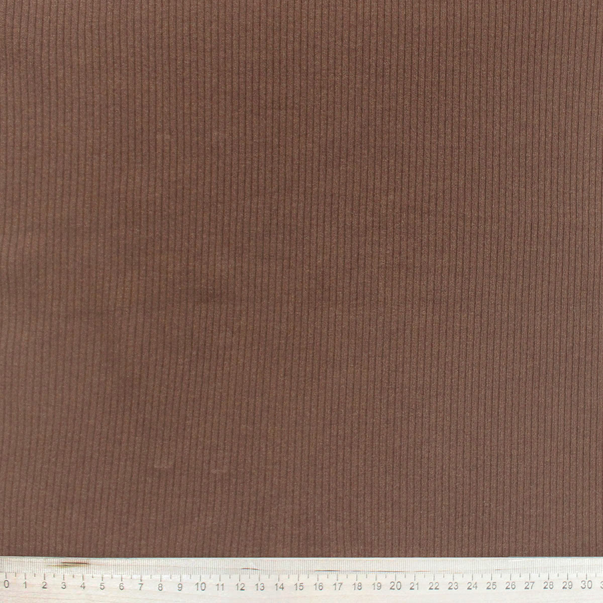 Трикотажное полотно коричневого цвета изготовлен из вискозы, полиэстера и эластана.