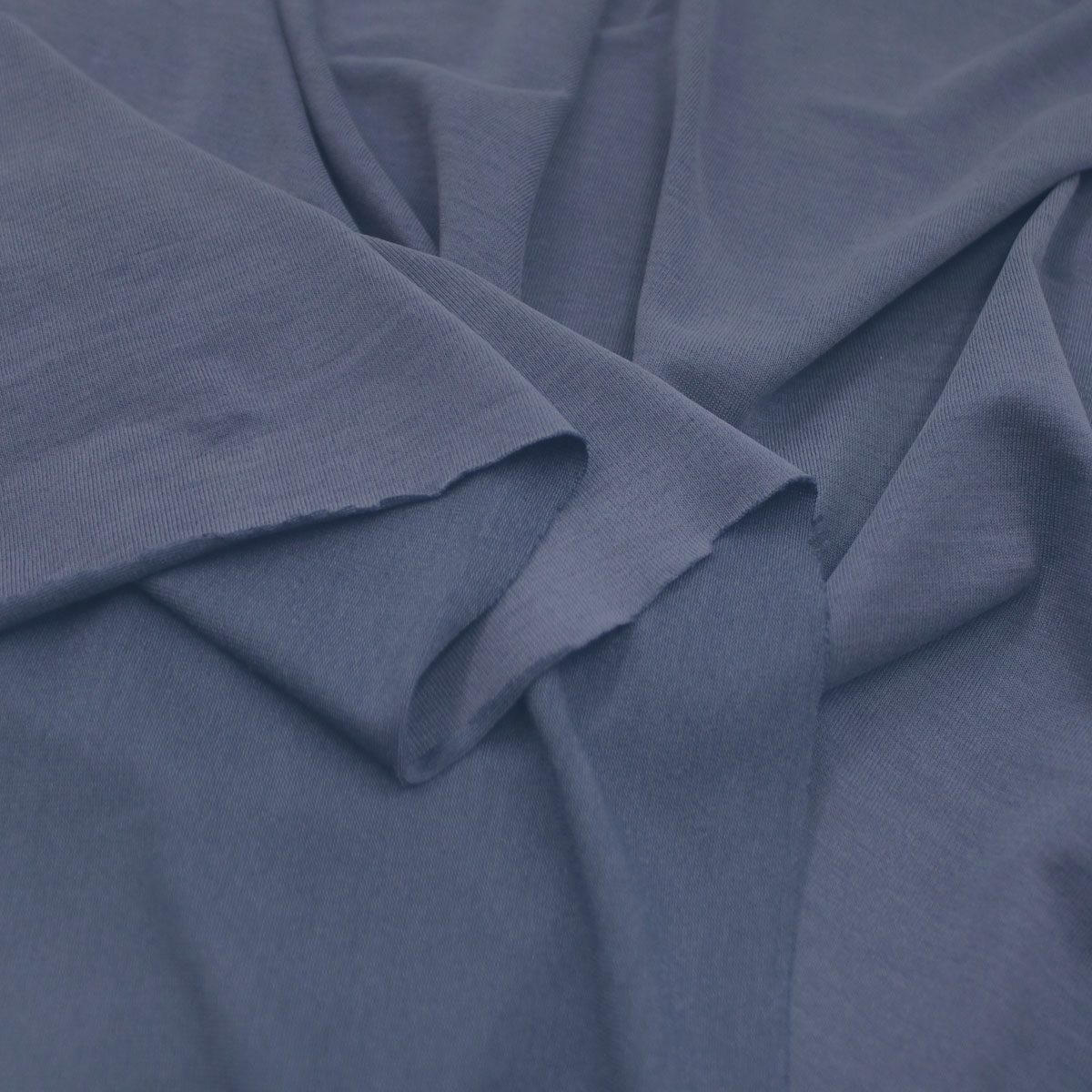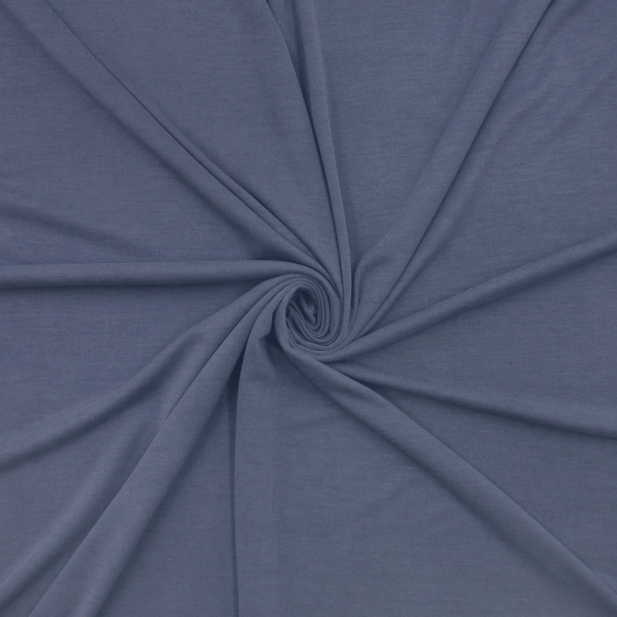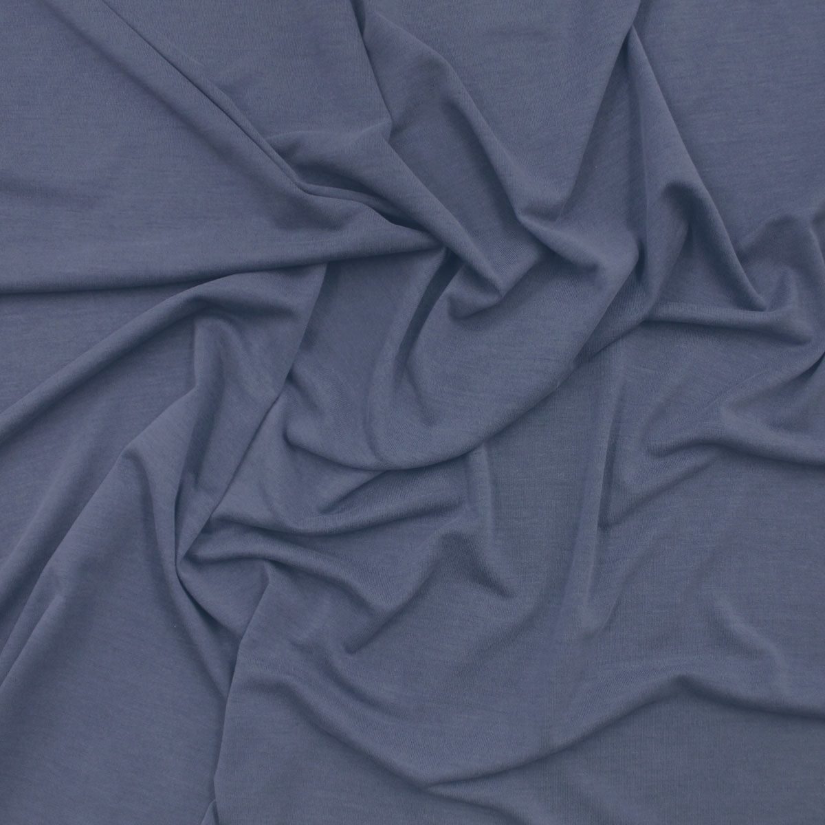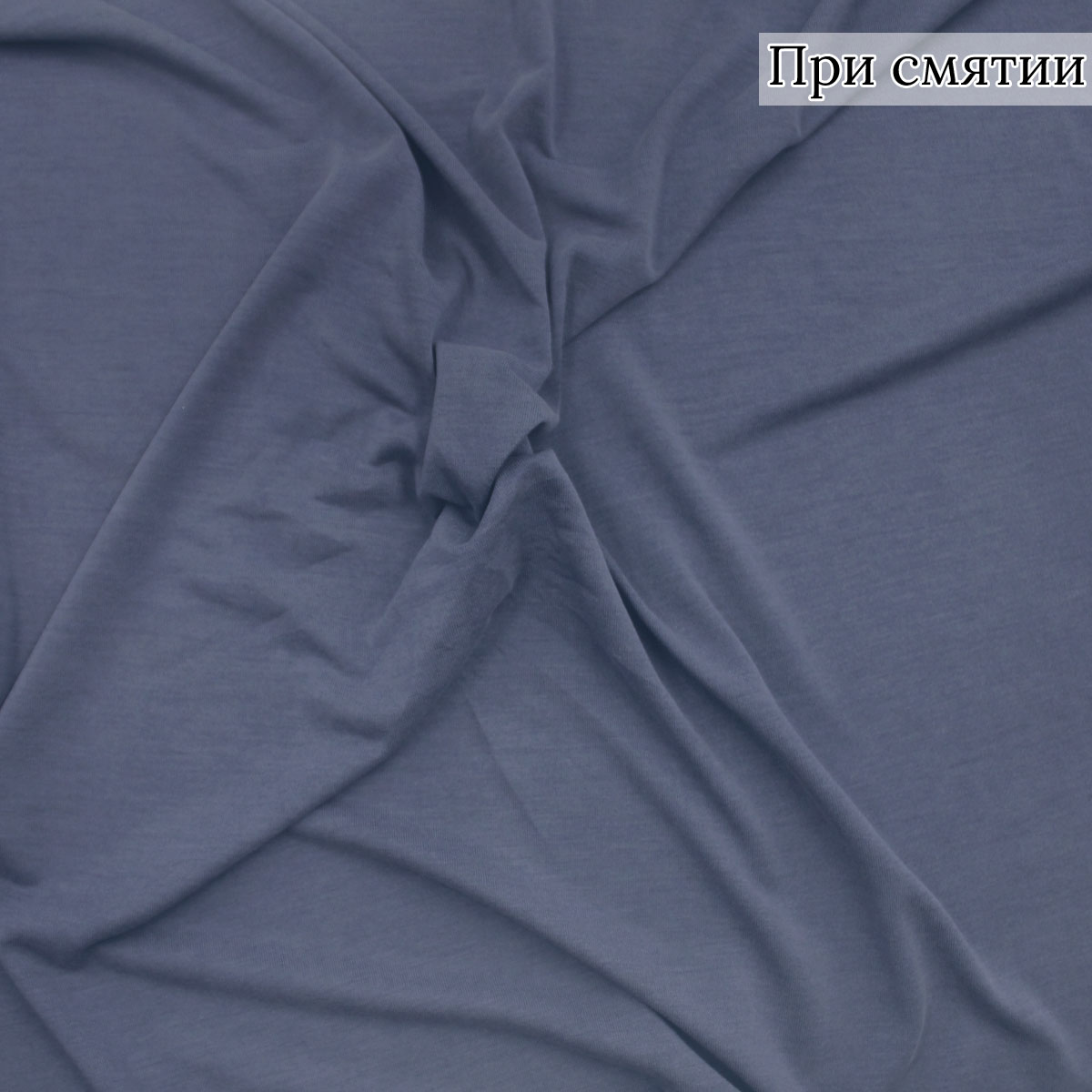 Трикотажная ткань синего цвета с составом 70% вискоза, 28% полиэстер, 2% эластан обладает следующими характеристиками: