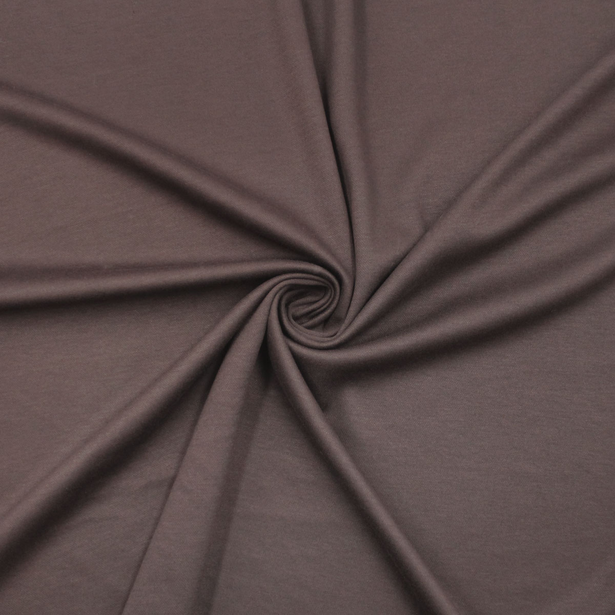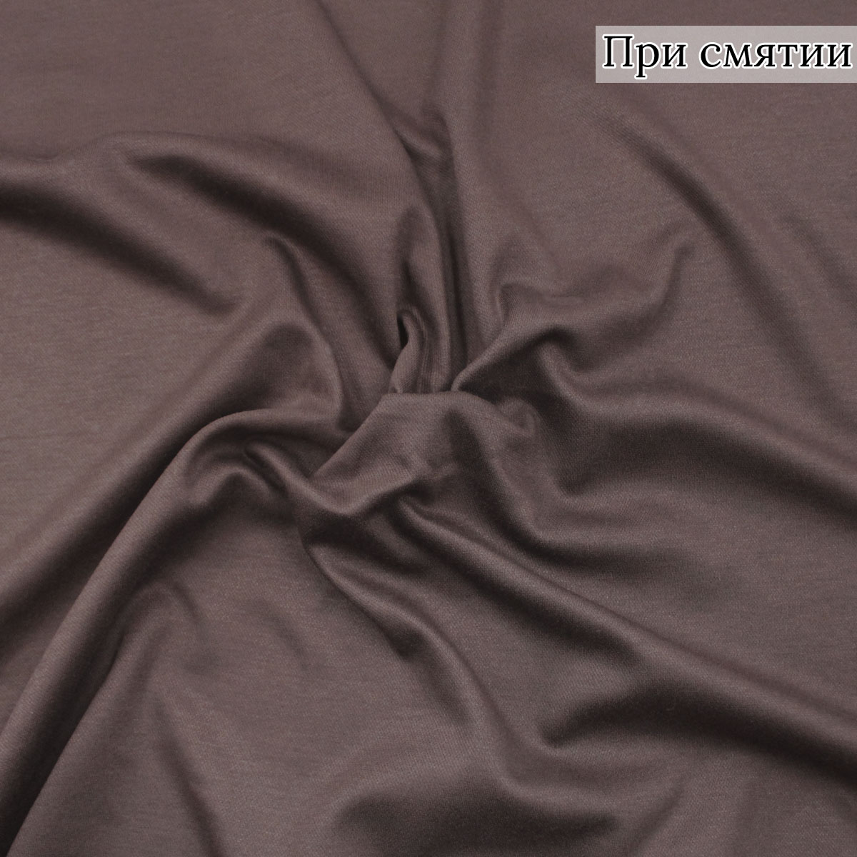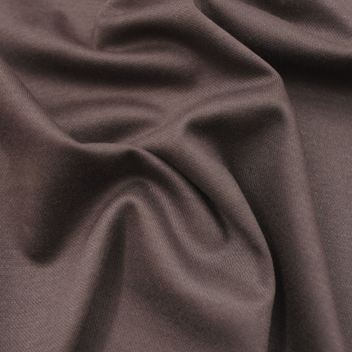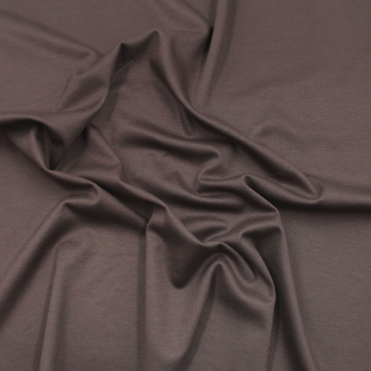 Трикотажная ткань темно-коричневая отличается плотностью и эластичностью. Она хорошо сохраняет форму изделия, очень приятная на ощупь, гладкая и мягкая и состоит из 45% Вискоза, 50% Полиэстер, 5% Эластан