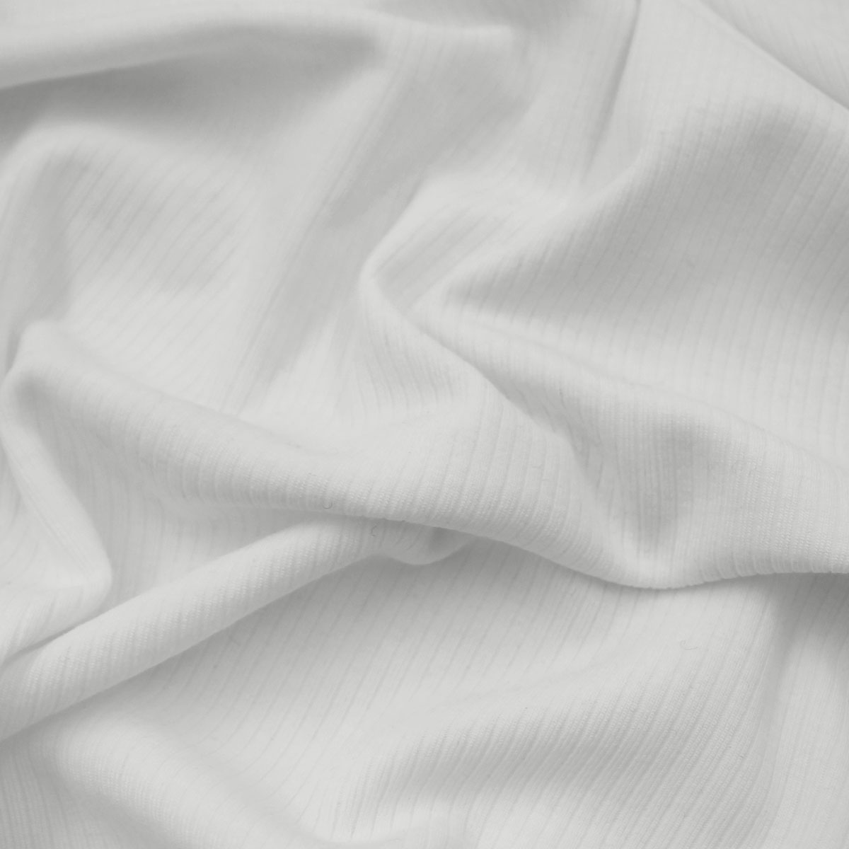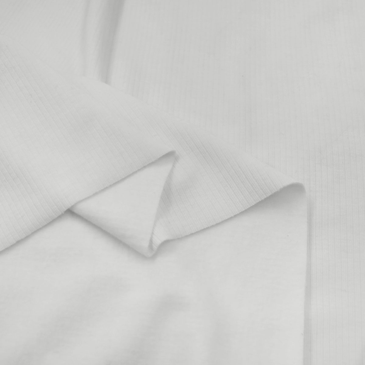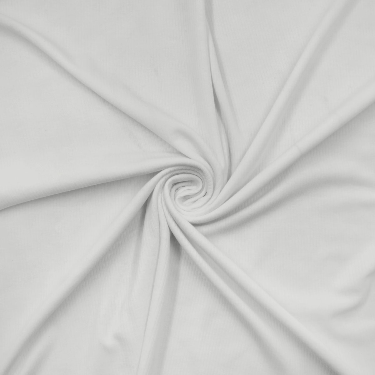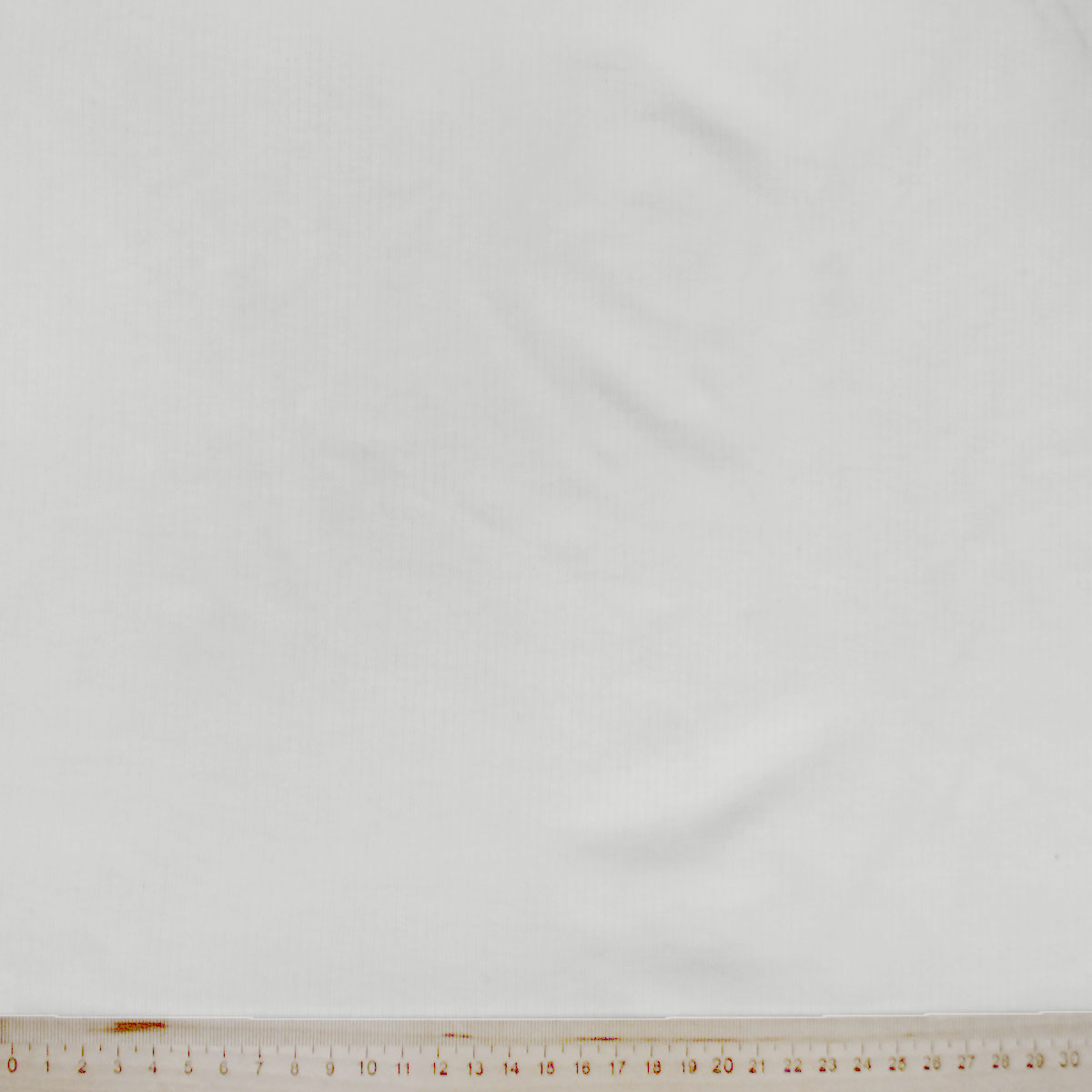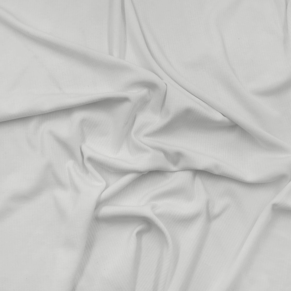 Трикотажное полотно белого цвета отличается плотностью и эластичностью. Она хорошо сохраняет форму изделия, очень приятная на ощупь, гладкая и мягкая, состав 80% Вискоза, 15% Полиэстер, 5% Эластан