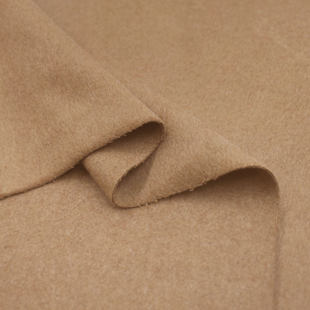 Пальтовая ткань песочного цвета с составом 90% шерсти и 10% полиэстера предлагает сочетание тепла, которое дает шерсть, и практичности полиэстера.
