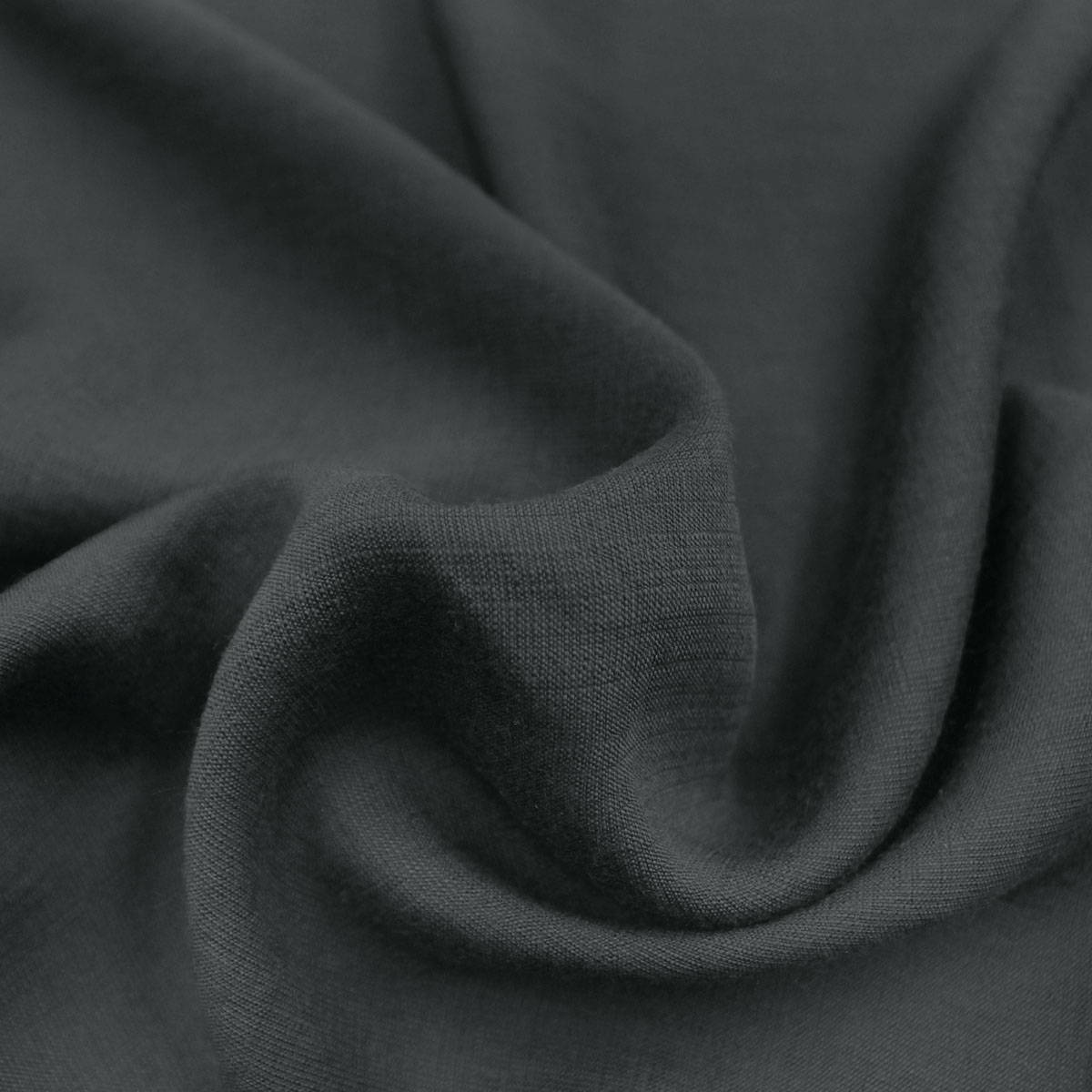 Плательная ткань черного цвета отличается плотностью и эластичностью. Она хорошо сохраняет форму изделия, очень приятная на ощупь, гладкая и мягкая, ткань состоит из 80% вискозы, 20% нейлона