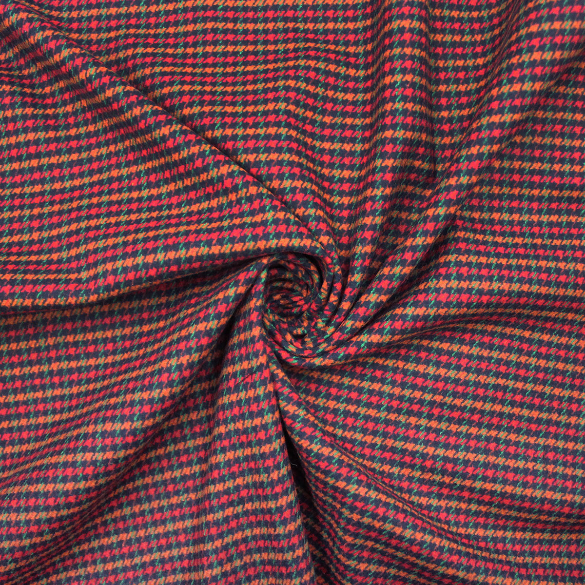 Костюмная ткань красно-оранжевая в "гусиную лапку"