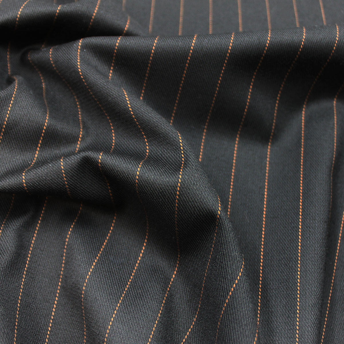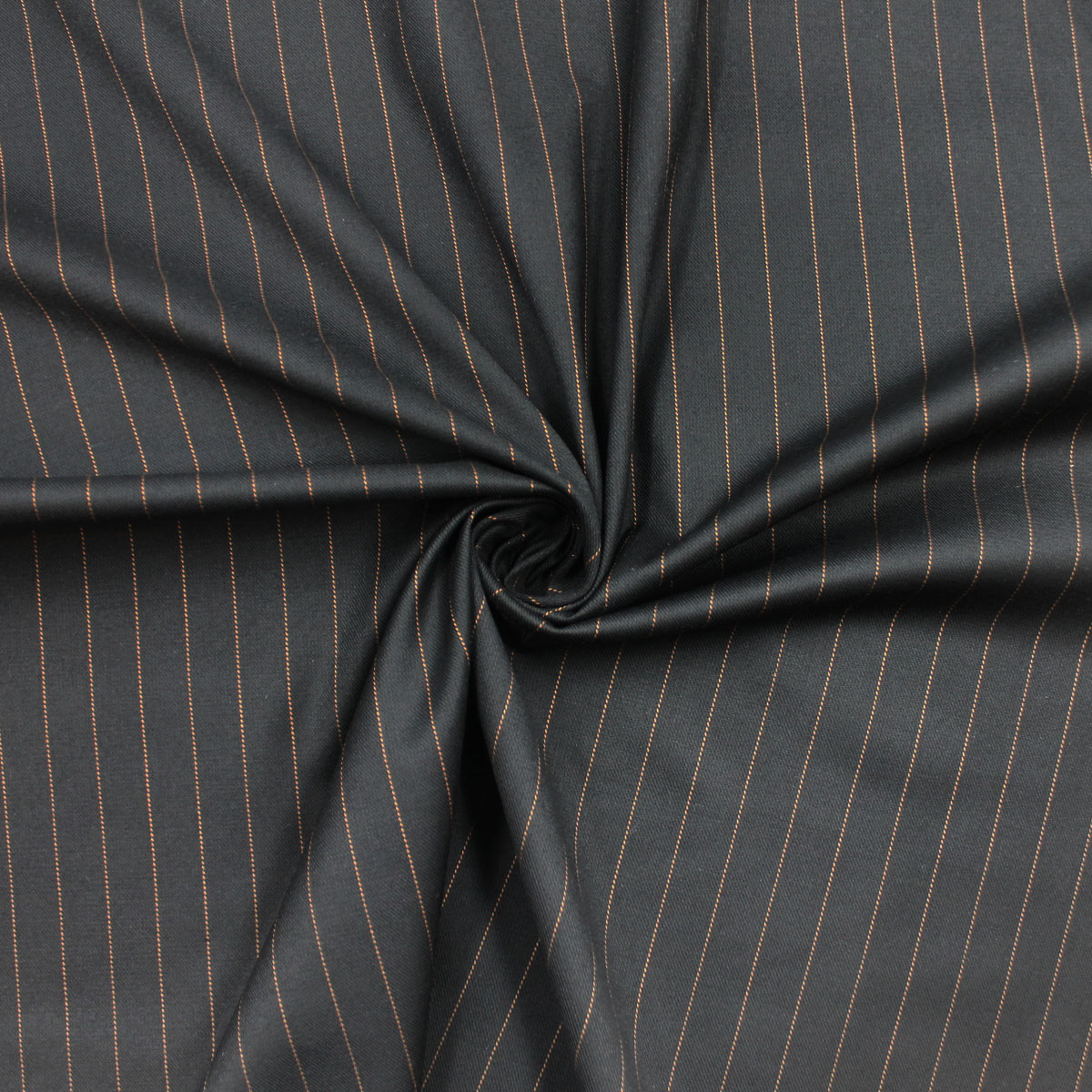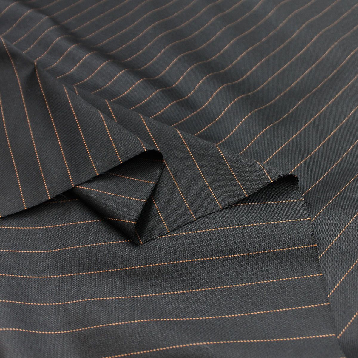 Костюмная ткань черная в полоску идеально подходит для повседневной одежды. Она состоит из 29% вискозы, 2% эластана и 69% полиэстера.