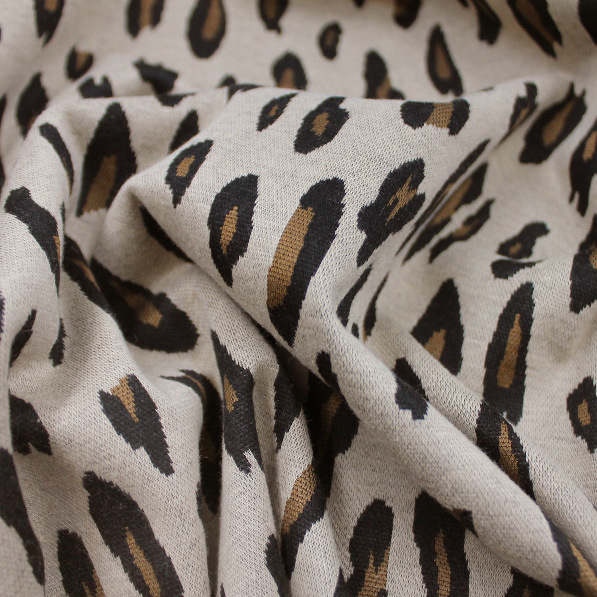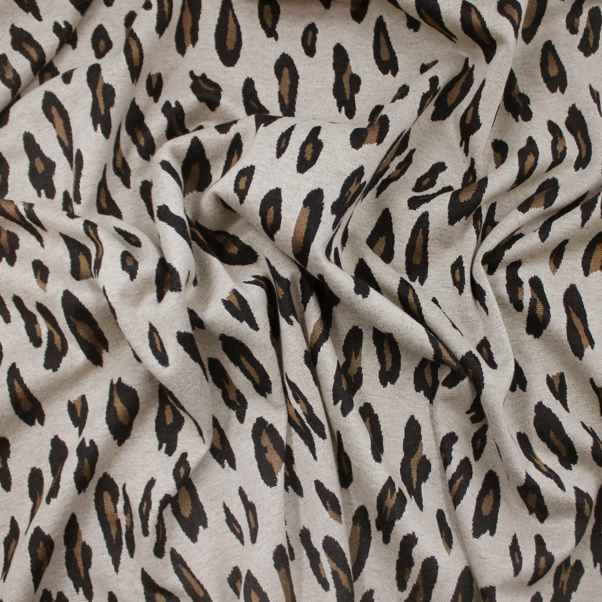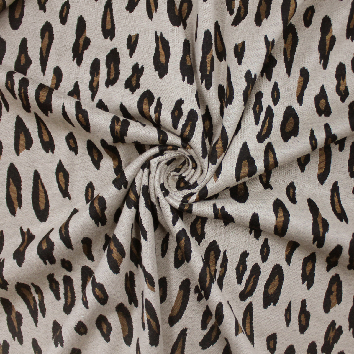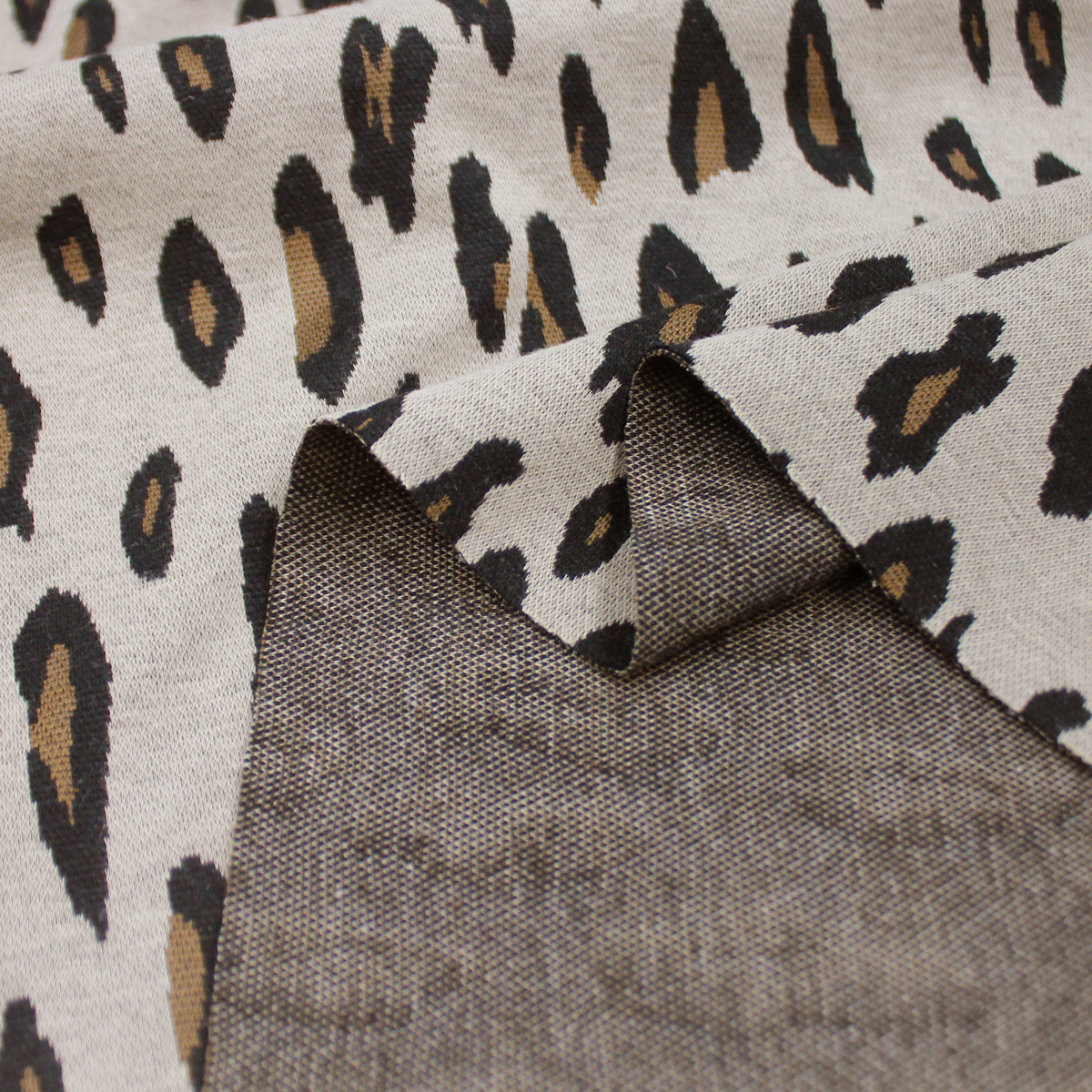 Трикотаж жаккардовый бежевый с составом 95% Полиэстер, 5% Эластан — это мягкая, эластичная и комфортная ткань, идеально подходящая для повседневной одежды, такой как блузки, платья и юбки.