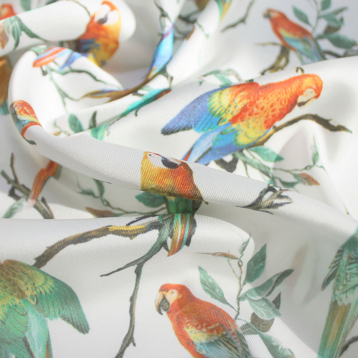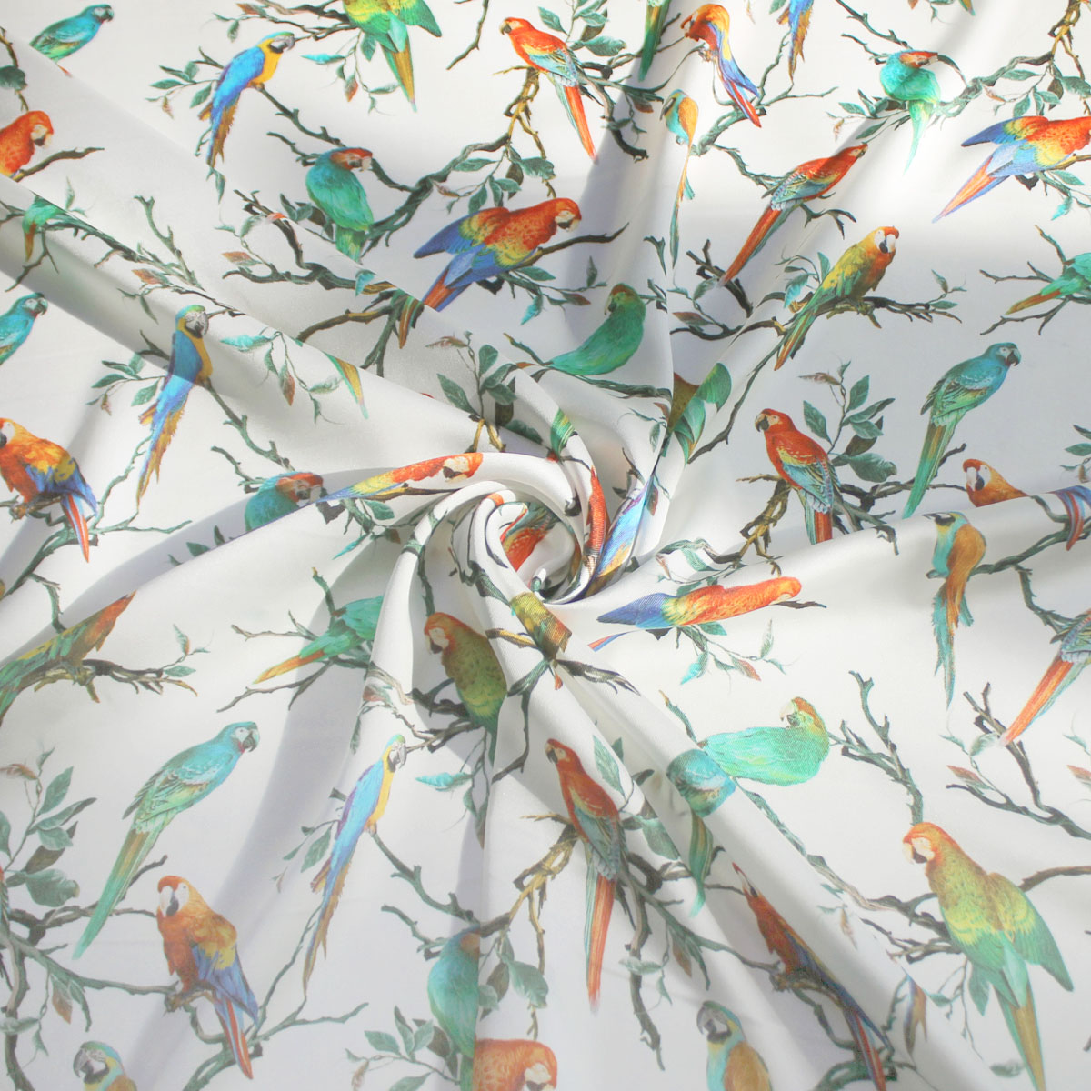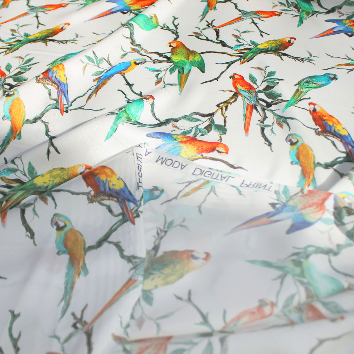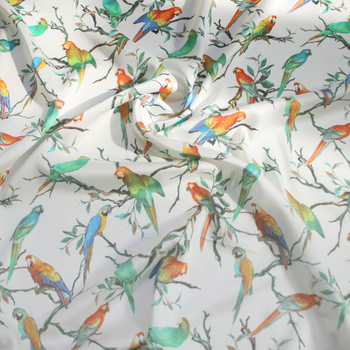 Шелк искусственный с попугаями