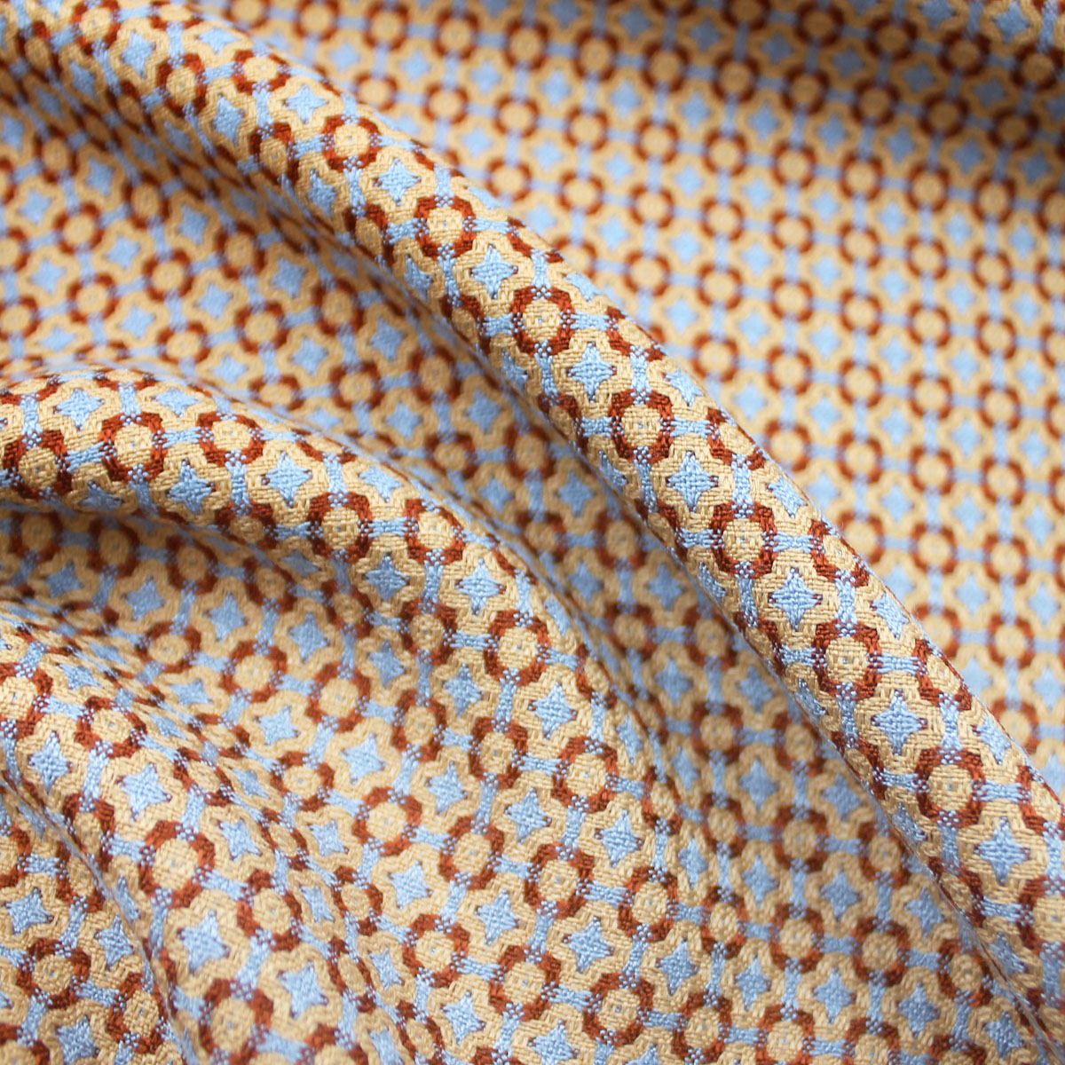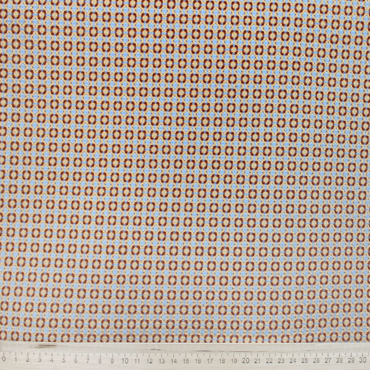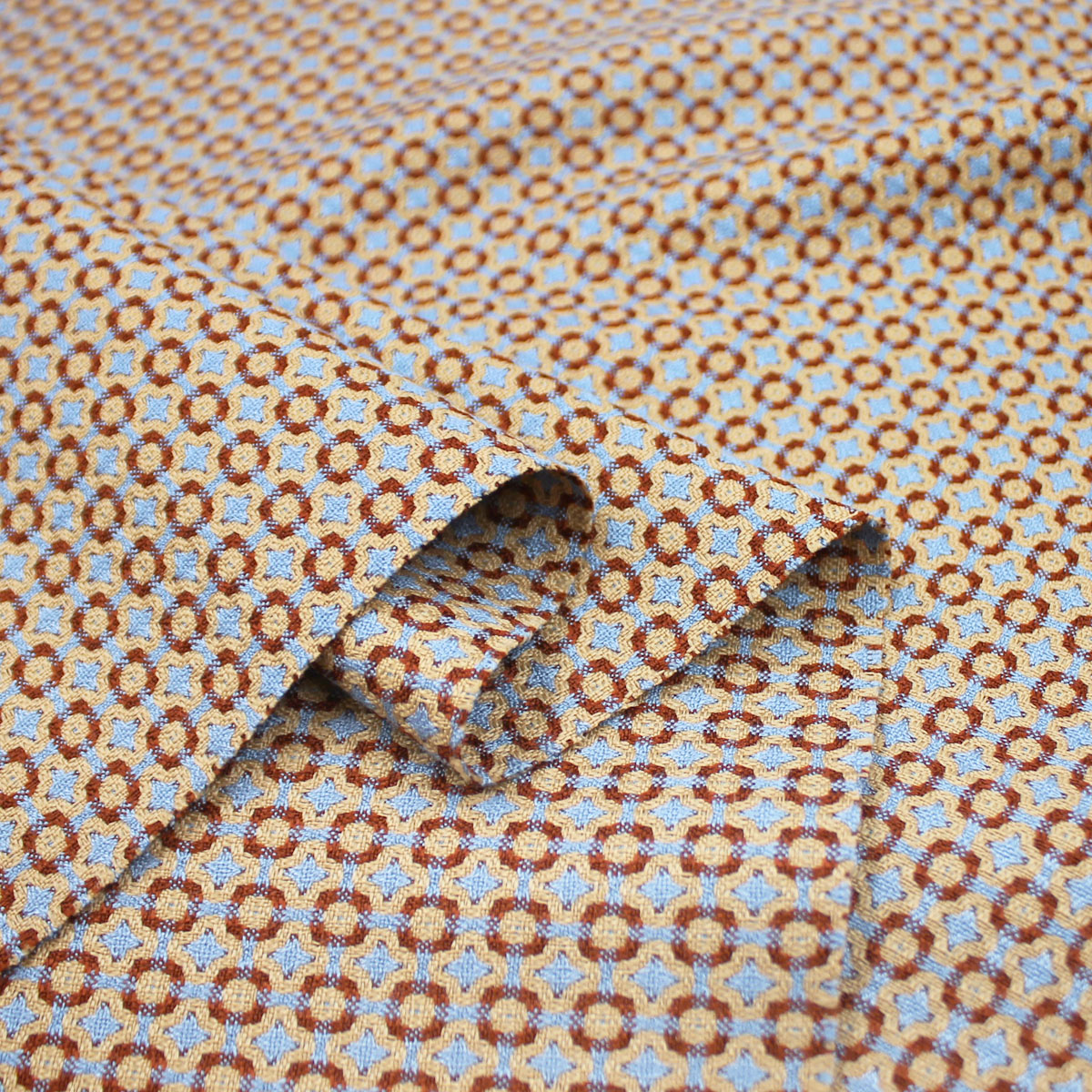 Костюмная ткань с геометрическим узором, состоящая из 20% Вискозы и 80% Полиэстера, универсальна и практична для ежедневной носки. Она подходит не только для создания офисных комплектов, но и изделий в стиле casual.