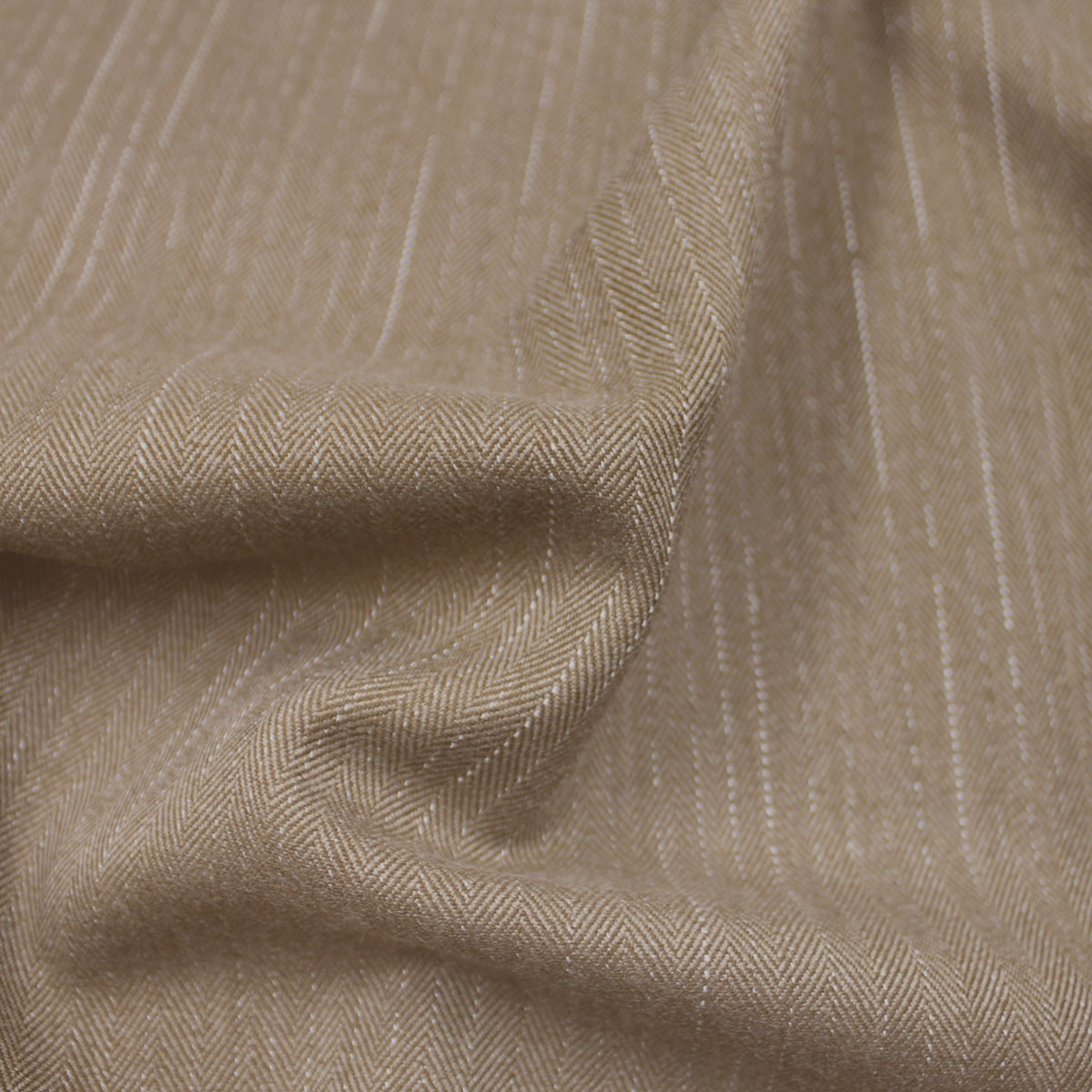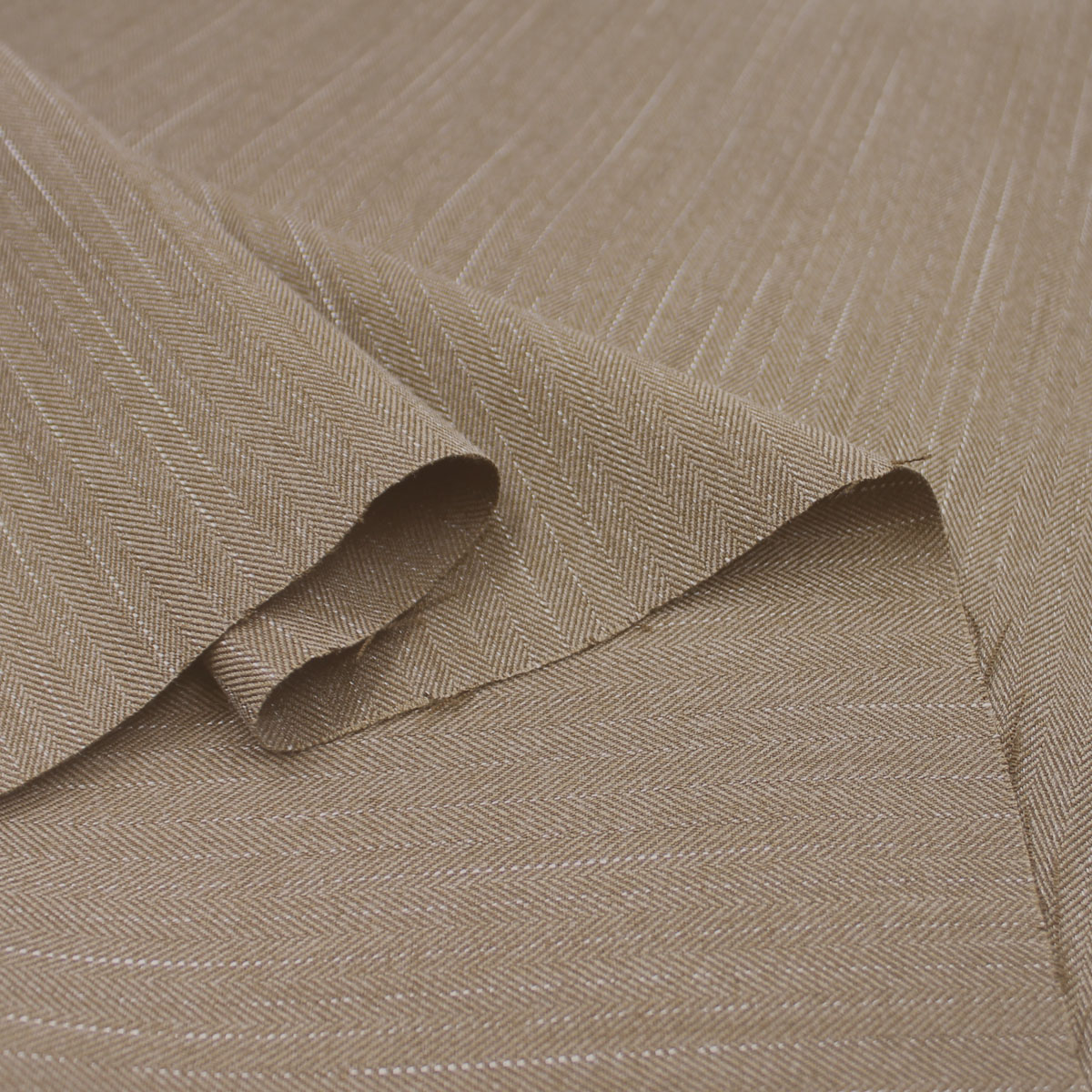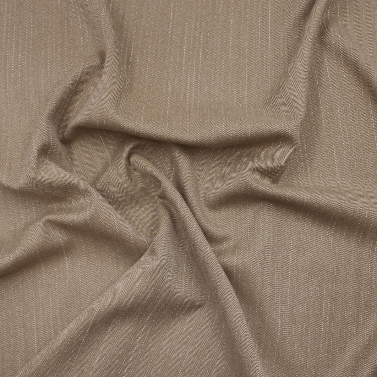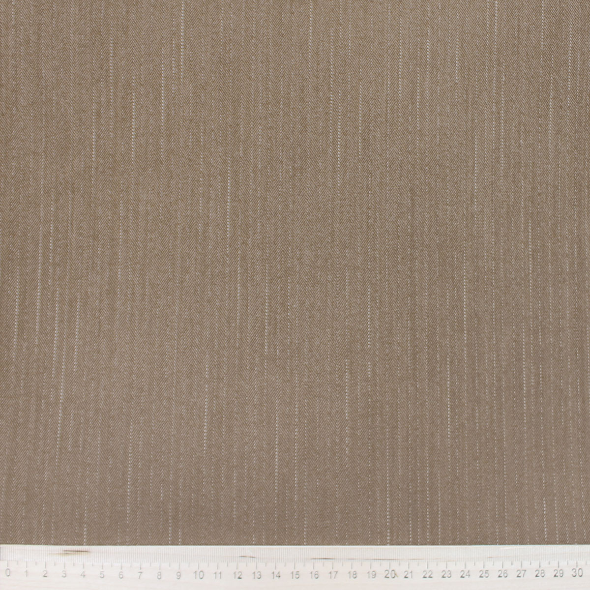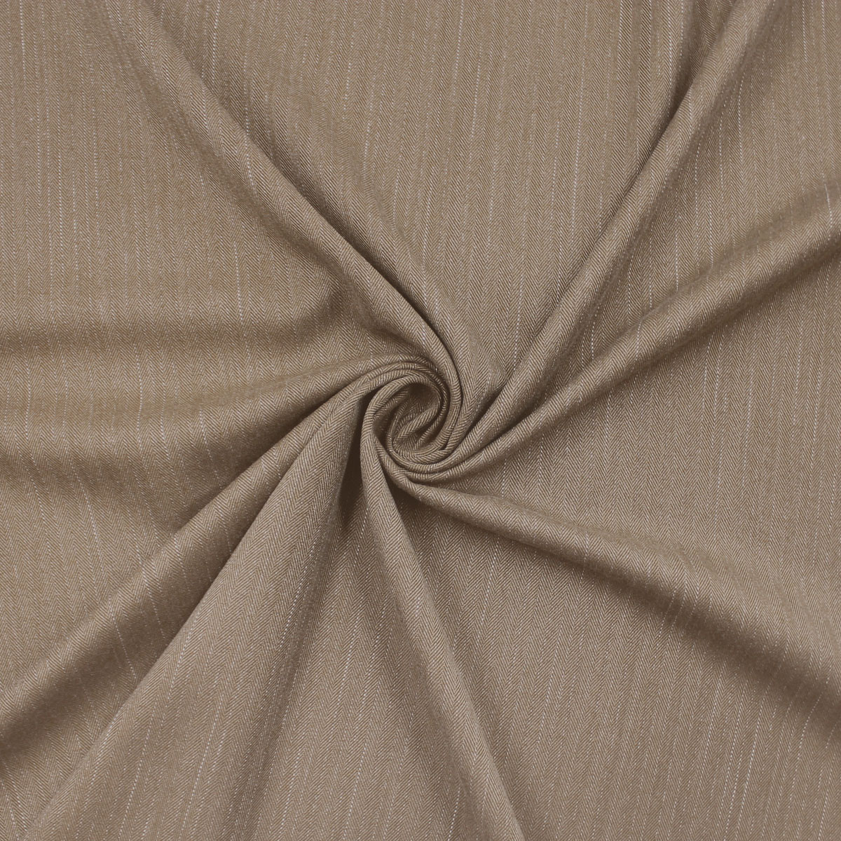 Костюмная ткань орехового цвета в полоску с содержанием 27% вискозы, 70% полиэстера, 3% эластана представляет собой высококачественный материал, который отличается превосходными свойствами и элегантным внешним видом.