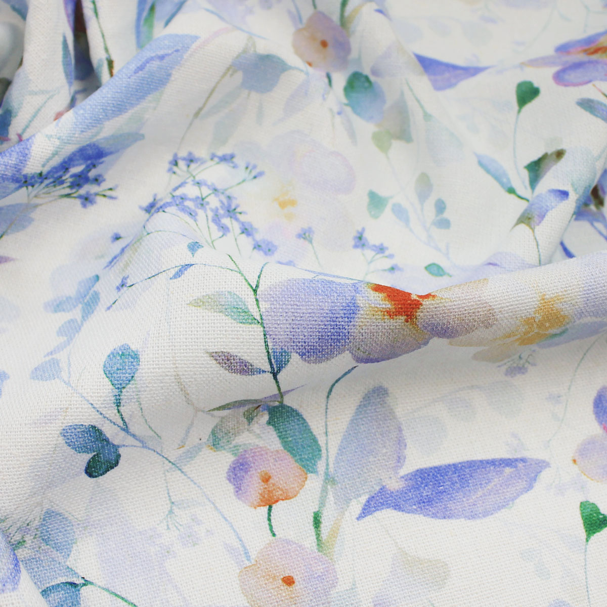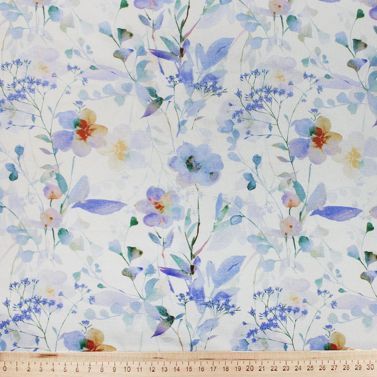 Плательная ткань с растительным молочно-лиловым принтом обладает следующими характеристиками: