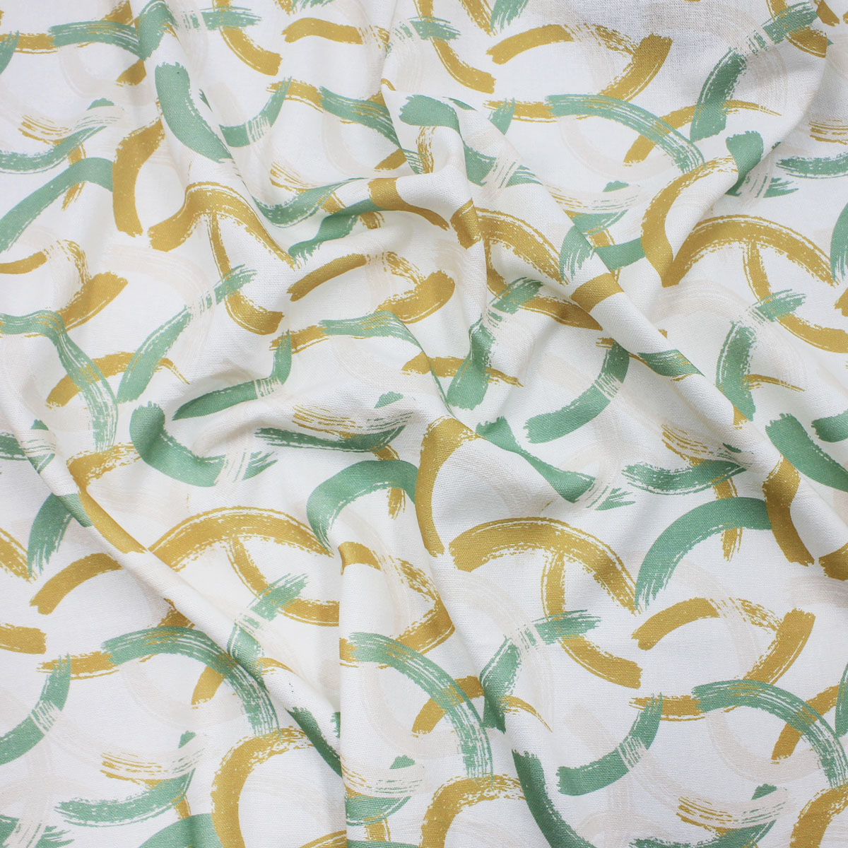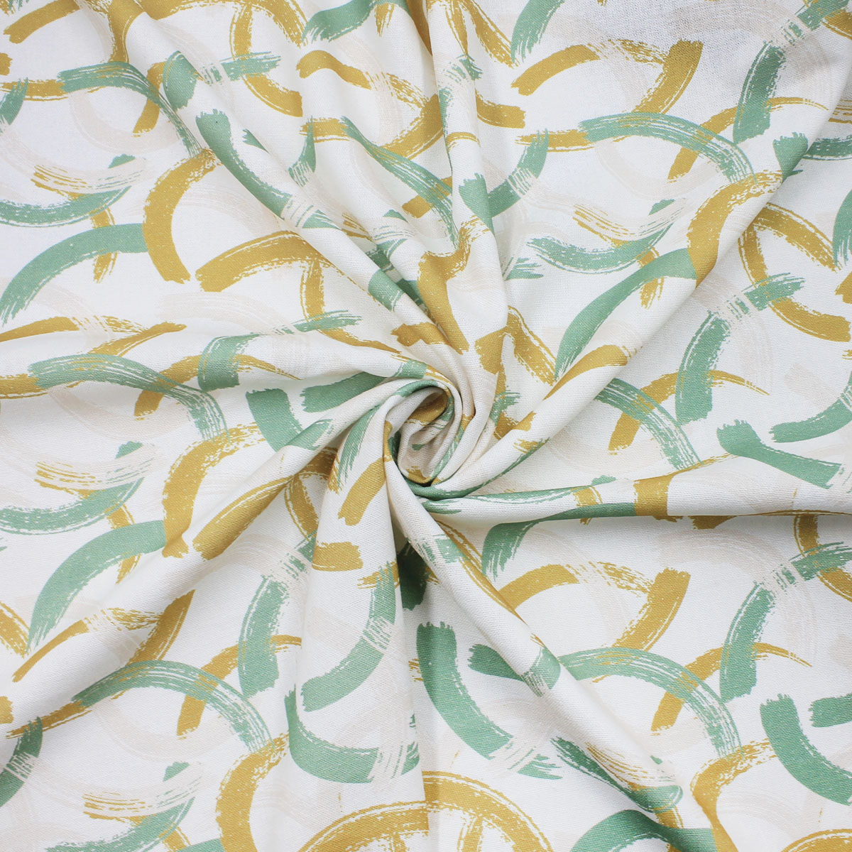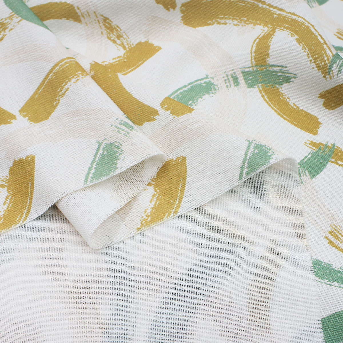 Плательная ткань с молочно-желтым принтом обладает следующими характеристиками: