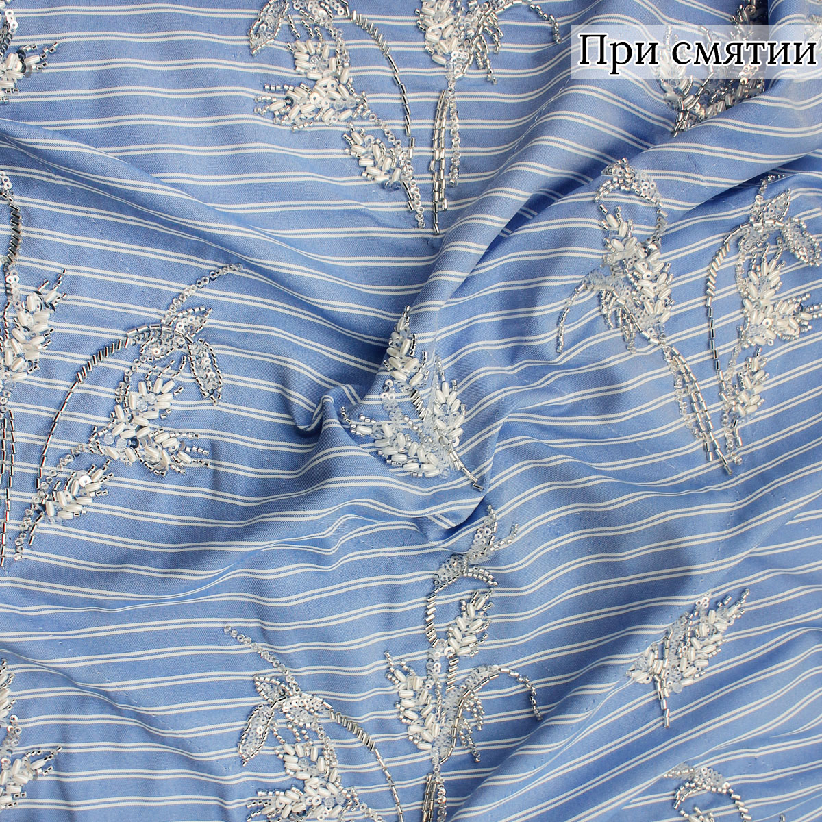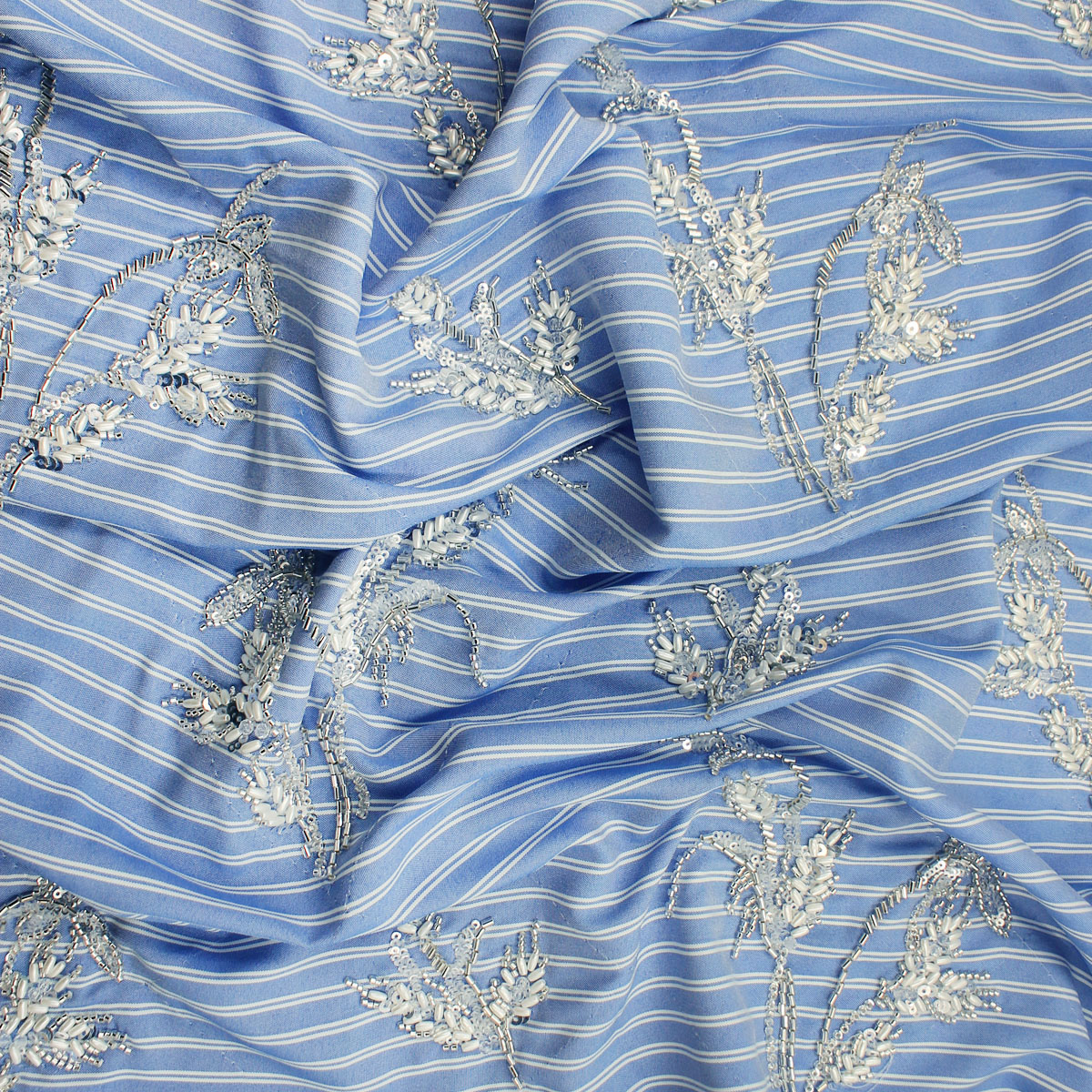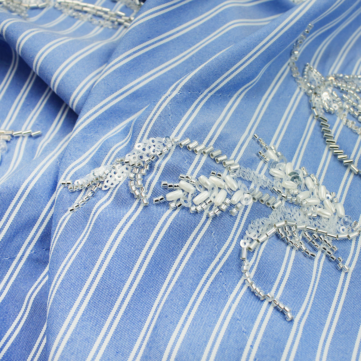 Ткань голубого цвета вышивка с пайетками и стеклярусом