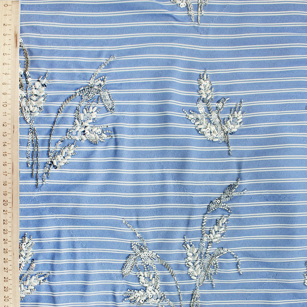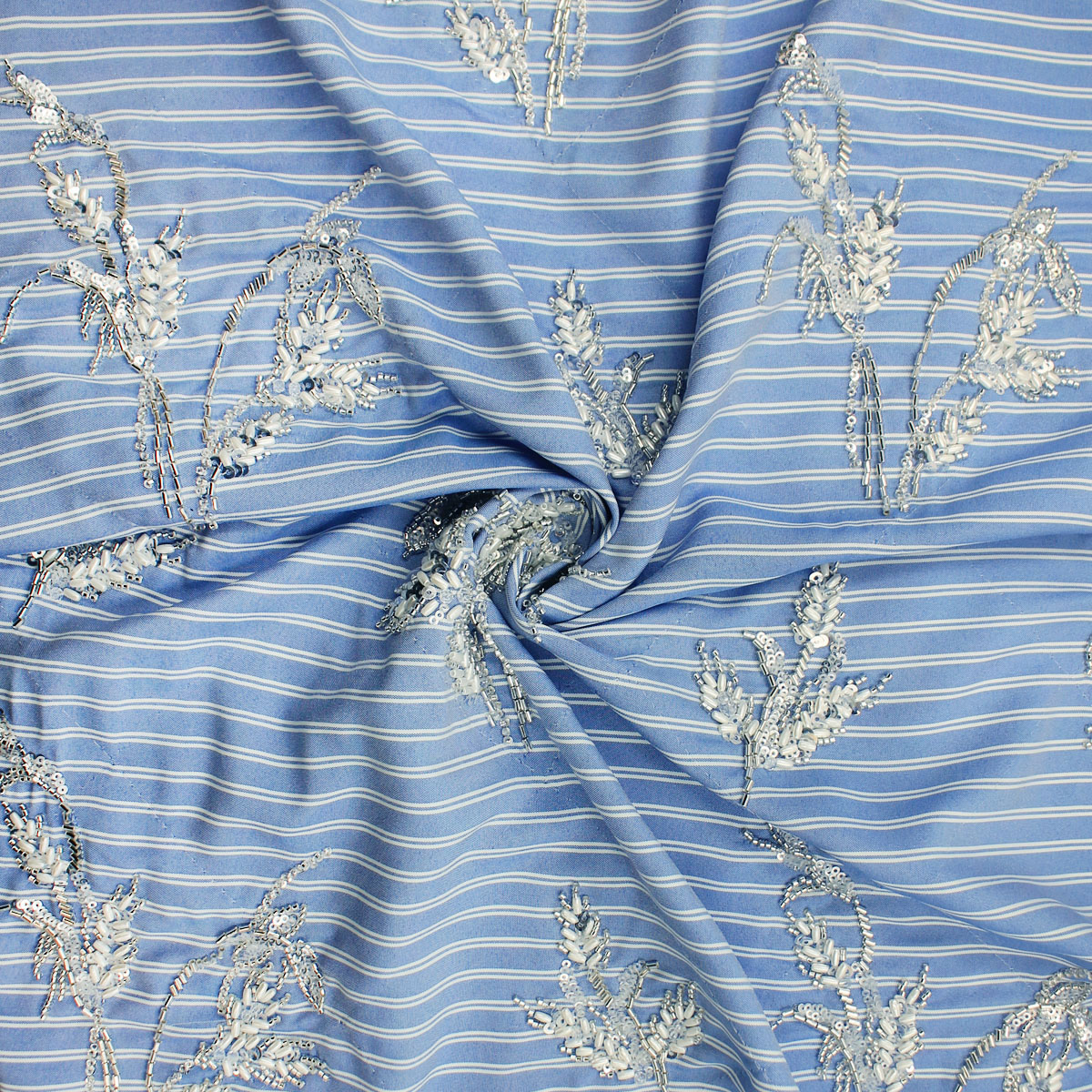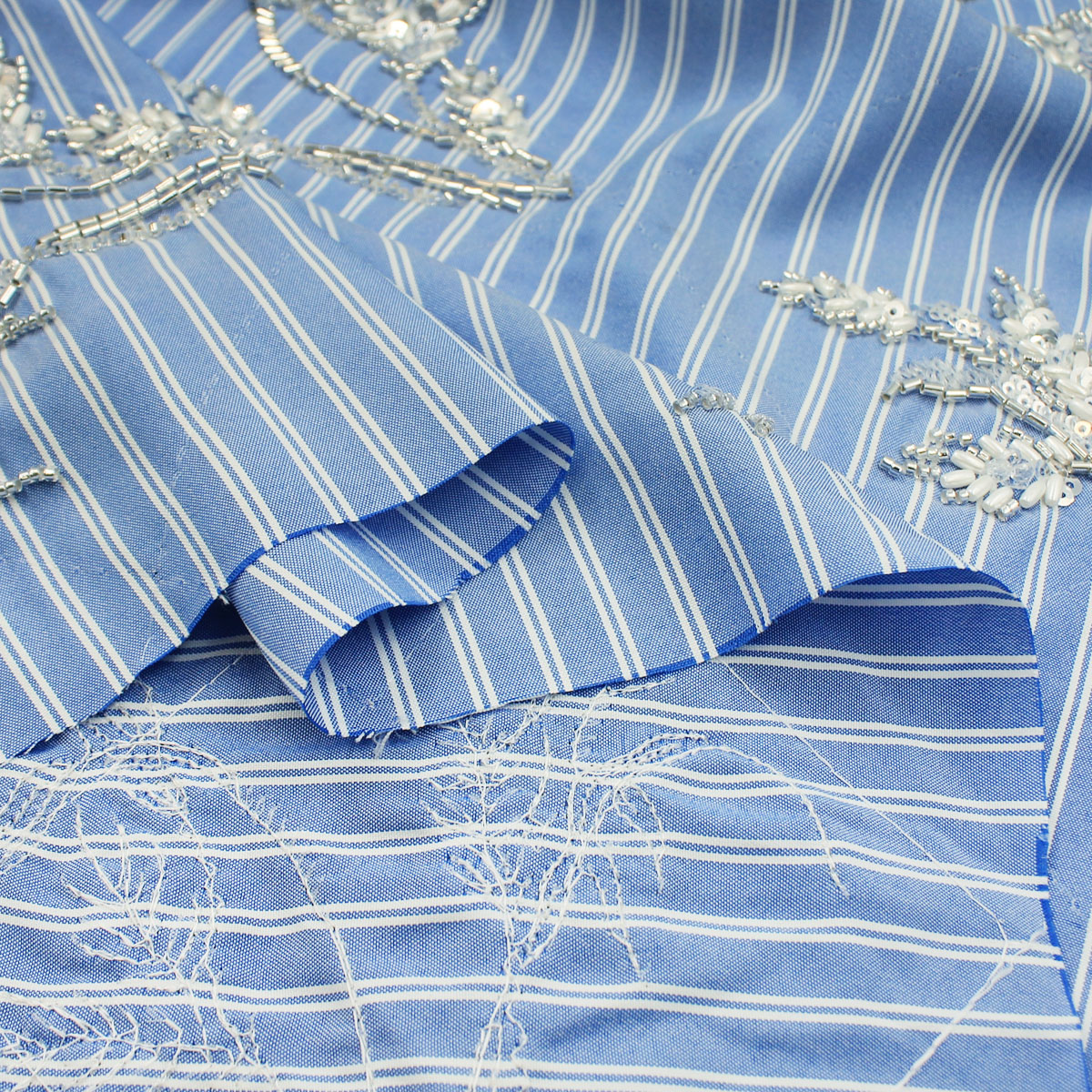Ткань голубого цвета вышивка с пайетками и стеклярусом