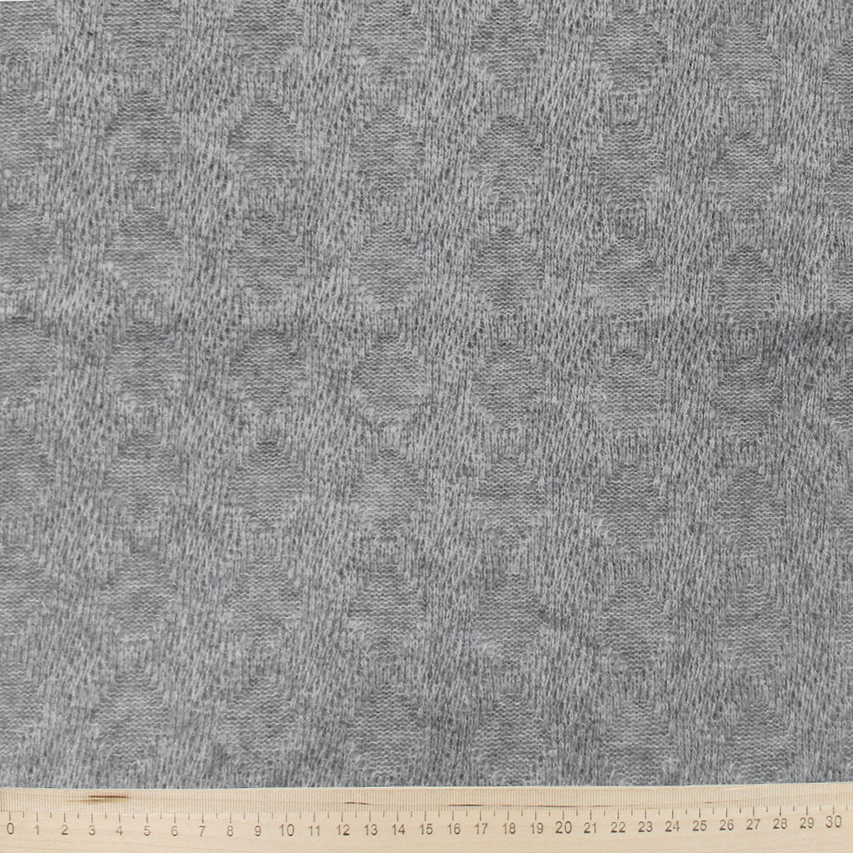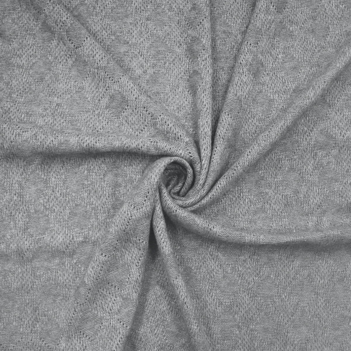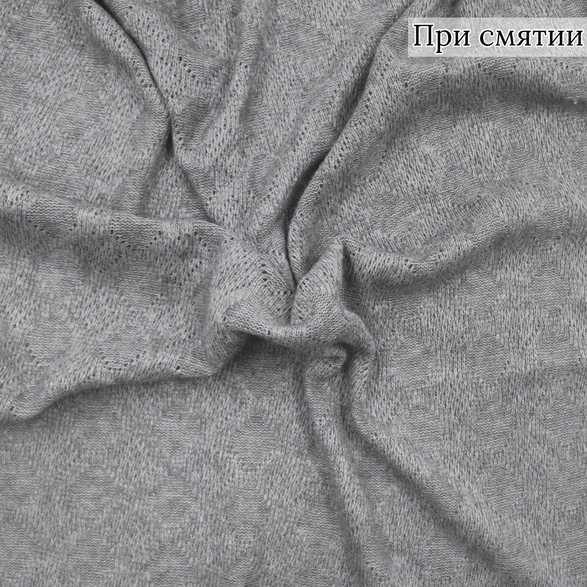 Ажурный трикотаж серого цвета с составом 6% Шерсть, 20% Вискоза, 22% Нейлон, 25% Полиэстер, 27% Акрил представляет собой теплый и красивый материал, который хорошо подходит для шитья разнообразной одежды. Вот некоторые особенности трикотажной ткани: