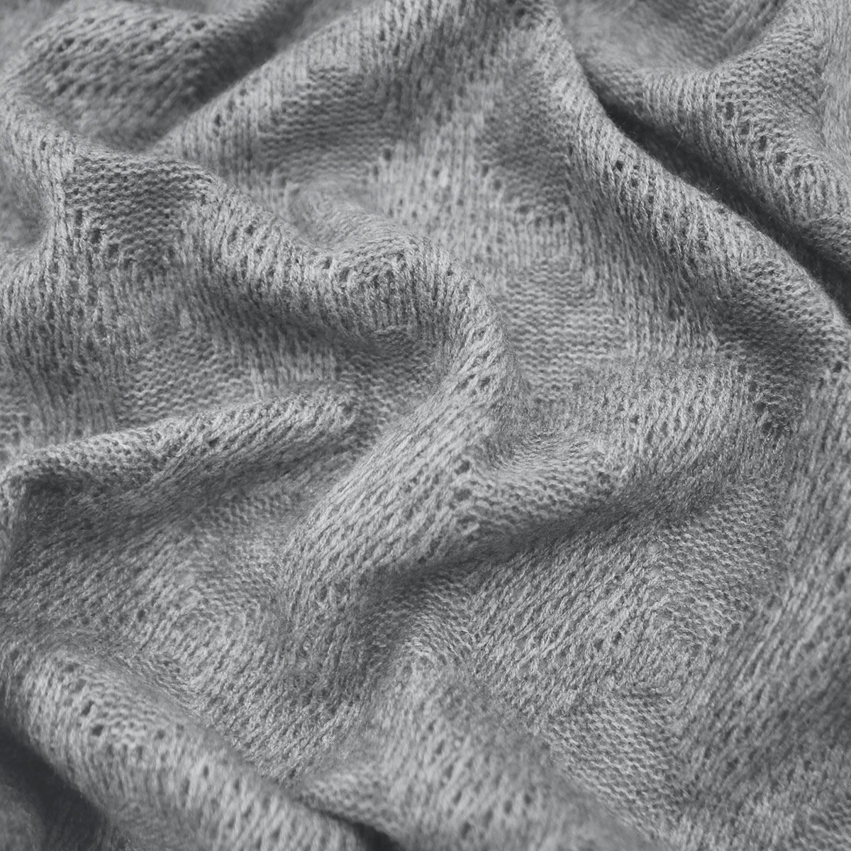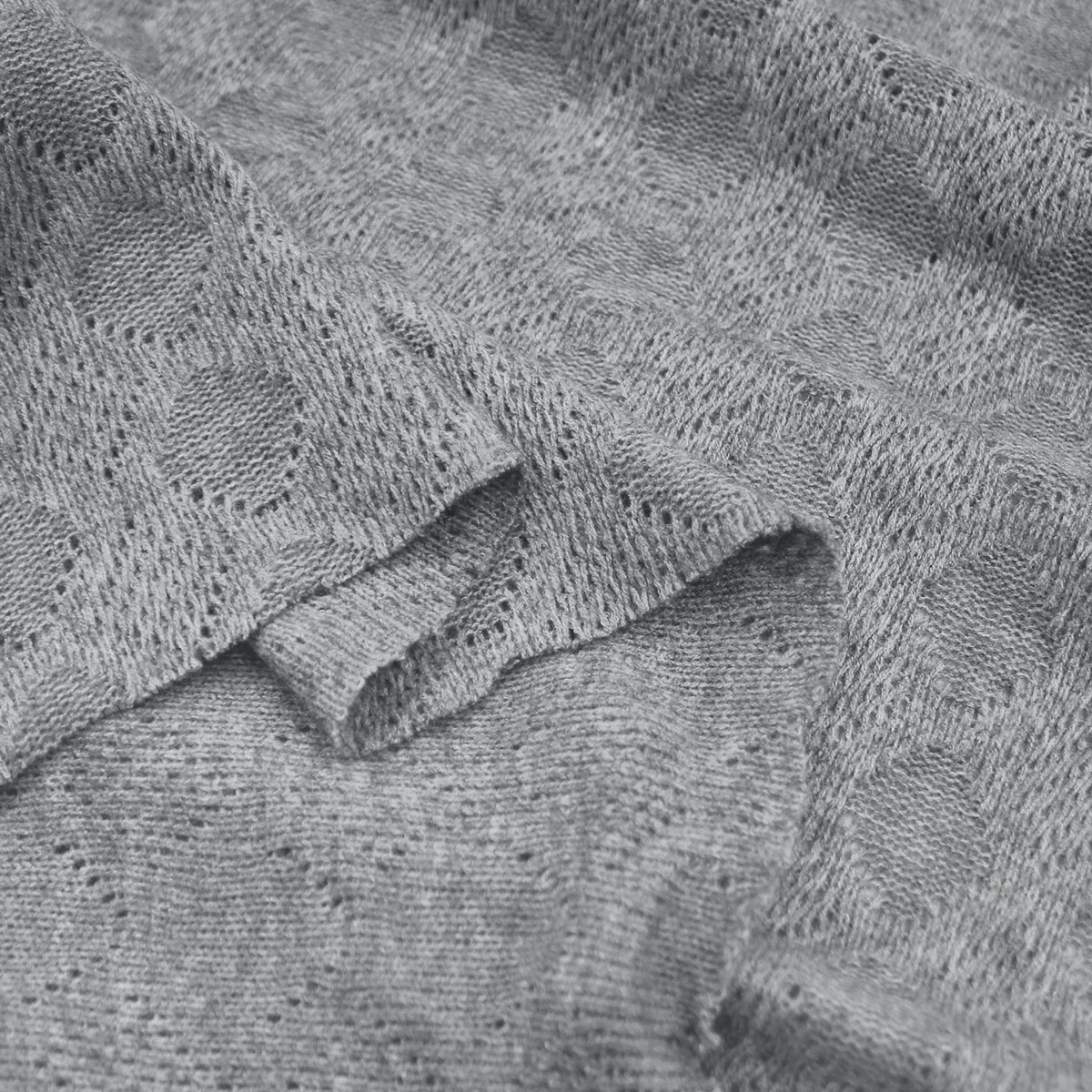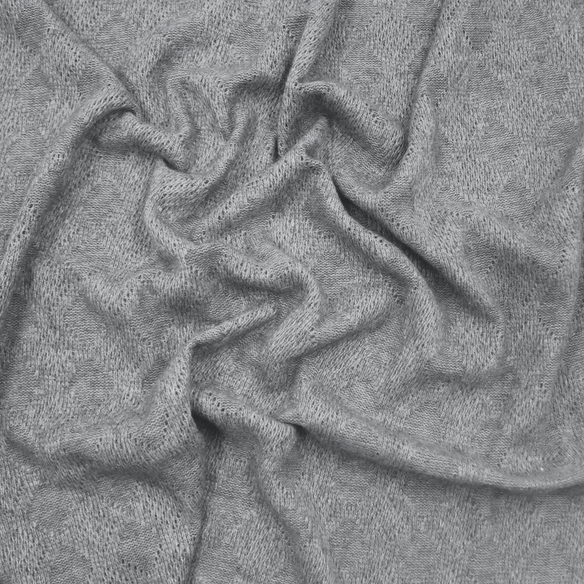 Ажурный трикотаж серого цвета с составом 6% Шерсть, 20% Вискоза, 22% Нейлон, 25% Полиэстер, 27% Акрил представляет собой теплый и красивый материал, который хорошо подходит для шитья разнообразной одежды. Вот некоторые особенности трикотажной ткани: