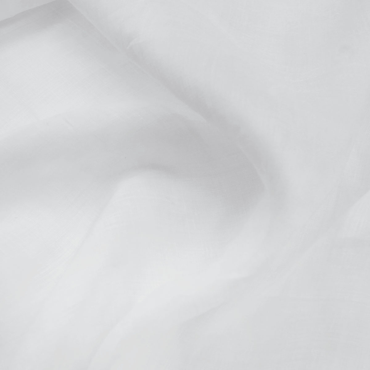 Ткань имеет естественный, приглушённый белый оттенок, с лёгким матовым блеском. Прекрасно принимает натуральные красители — идеальна для этно-стиля, устойчивой моды и арт-проектов.