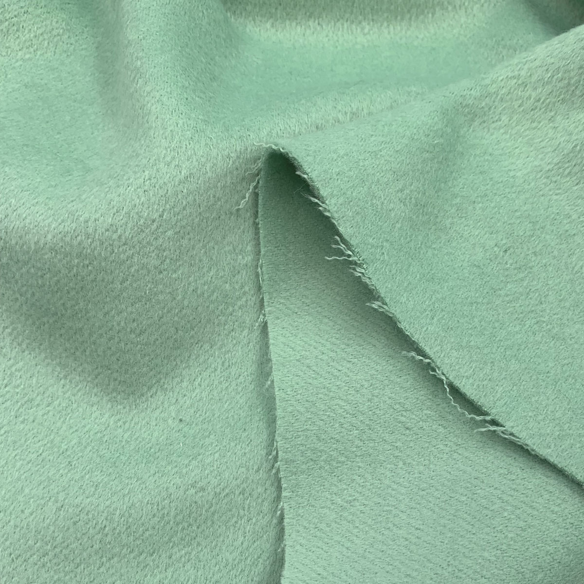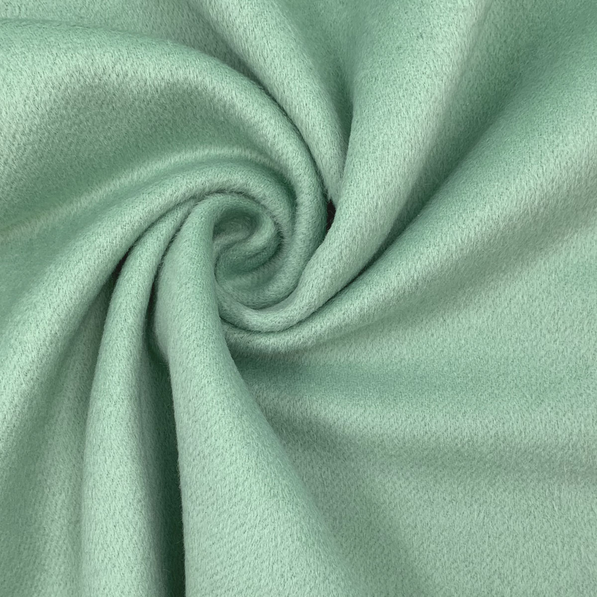 Пальтовая ткань мятного цвета с составом 50% шерсти и 50% полиэстера предлагает сочетание тепла, которое дает шерсть, и практичности полиэстера.