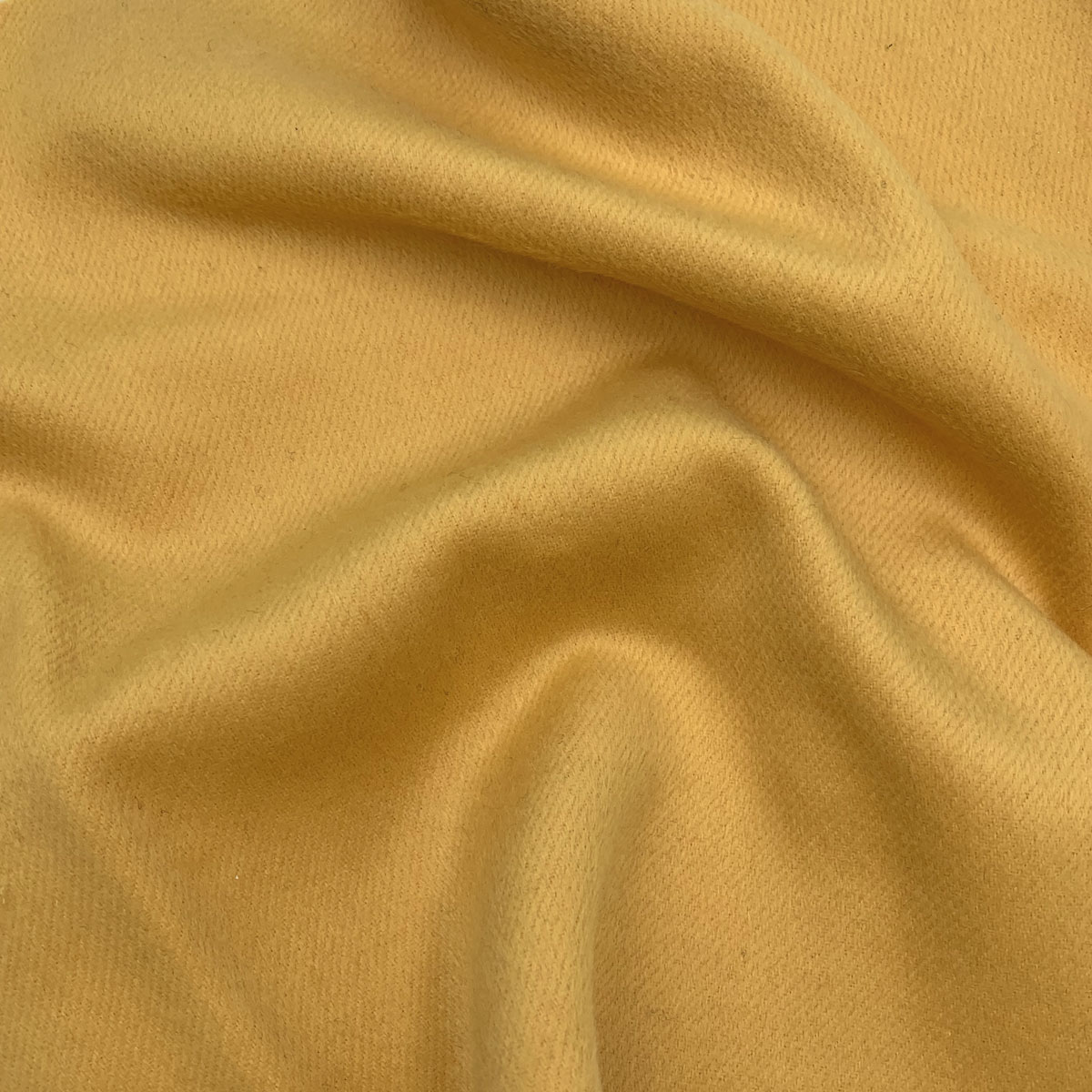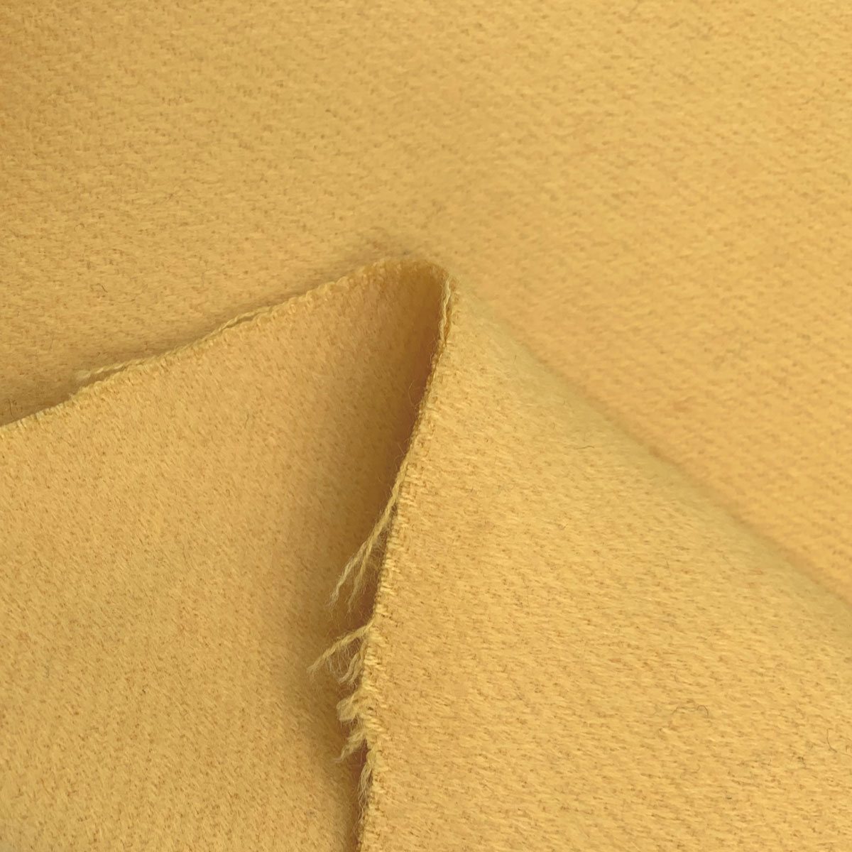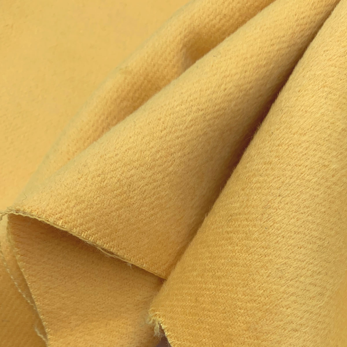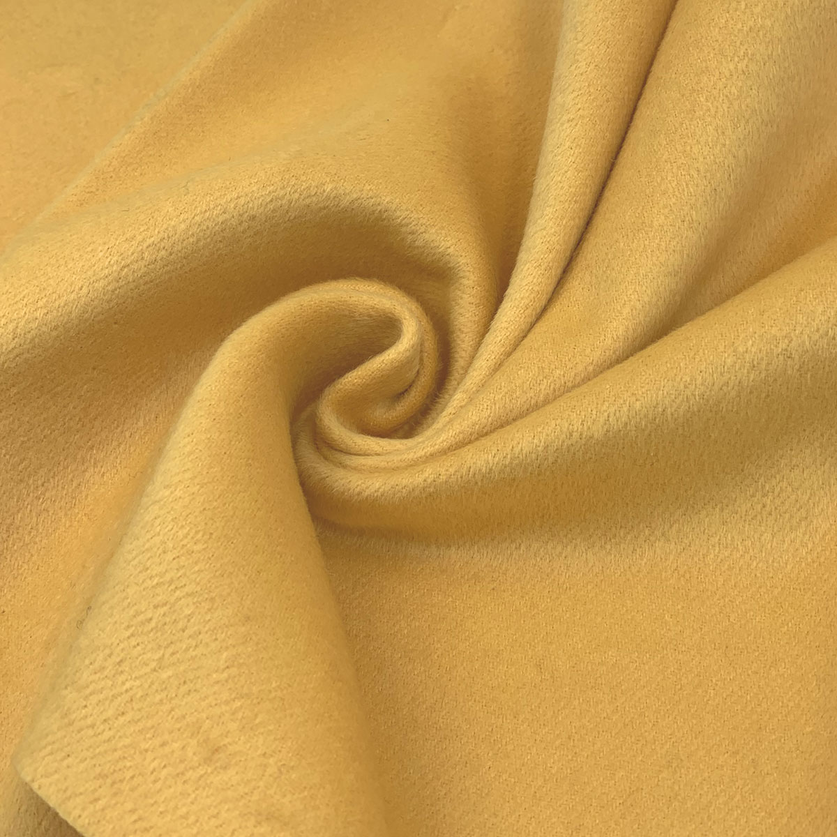 Пальтовая ткань желтого цвета с составом 50% шерсти и 50% полиэстера предлагает сочетание тепла, которое дает шерсть, и практичности полиэстера.