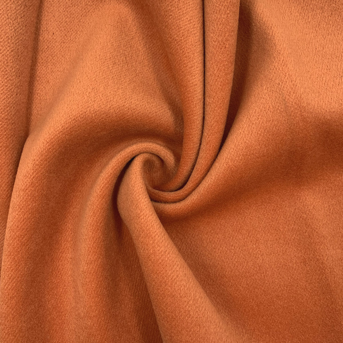 Пальтовая оранжевая ткань с составом 50% шерсти и 50% полиэстера предлагает сочетание тепла, которое дает шерсть, и практичности полиэстера.