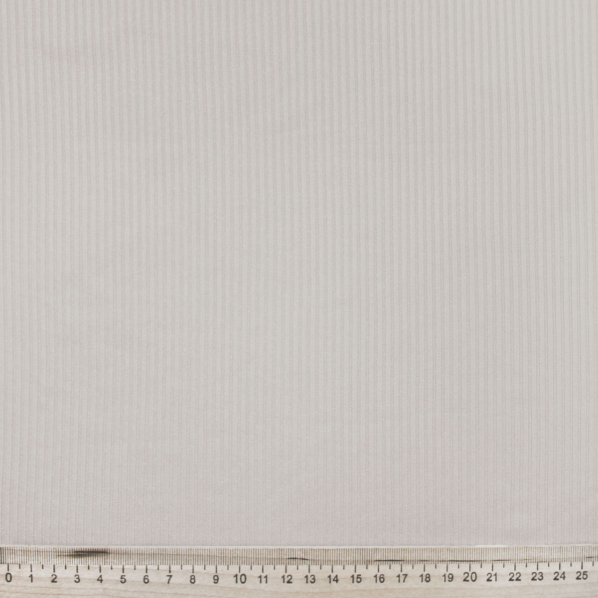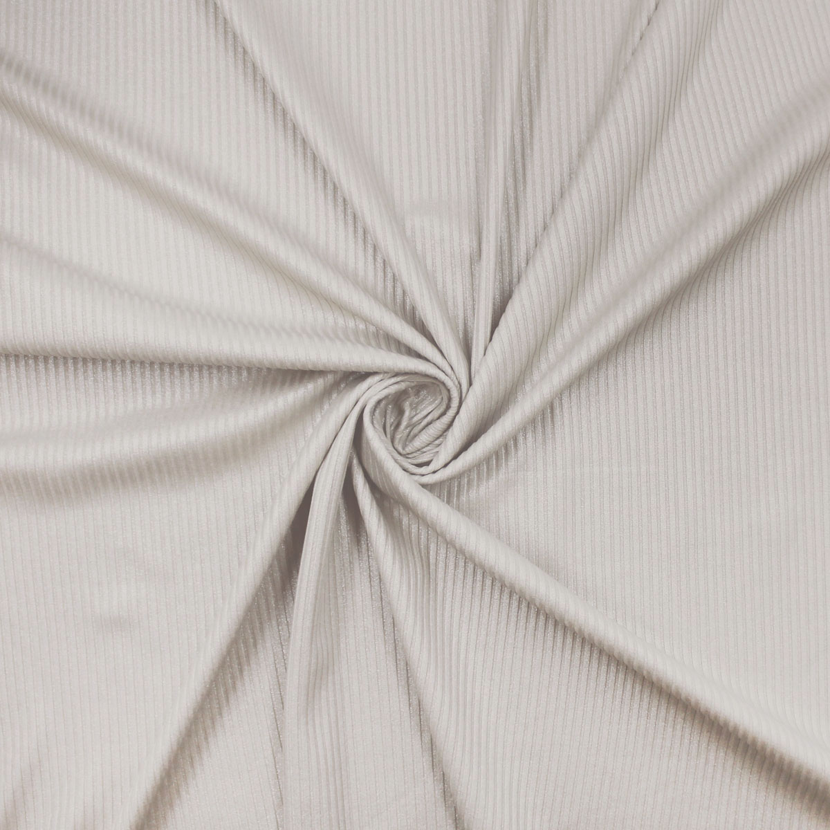Трикотажная ткань серебристо-бежевая цвета отличается плотностью и эластичностью. Она хорошо сохраняет форму изделия, очень приятная на ощупь, гладкая и мягкая.