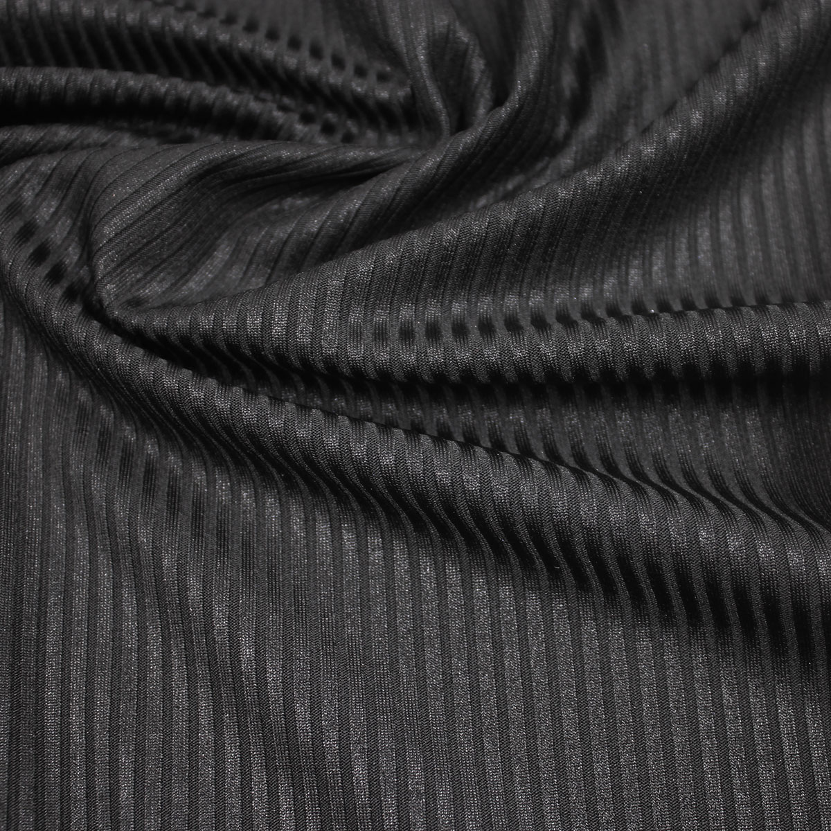 Трикотажная ткань черного цвета отличается плотностью и эластичностью. Она хорошо сохраняет форму изделия, очень приятная на ощупь, гладкая и мягкая.