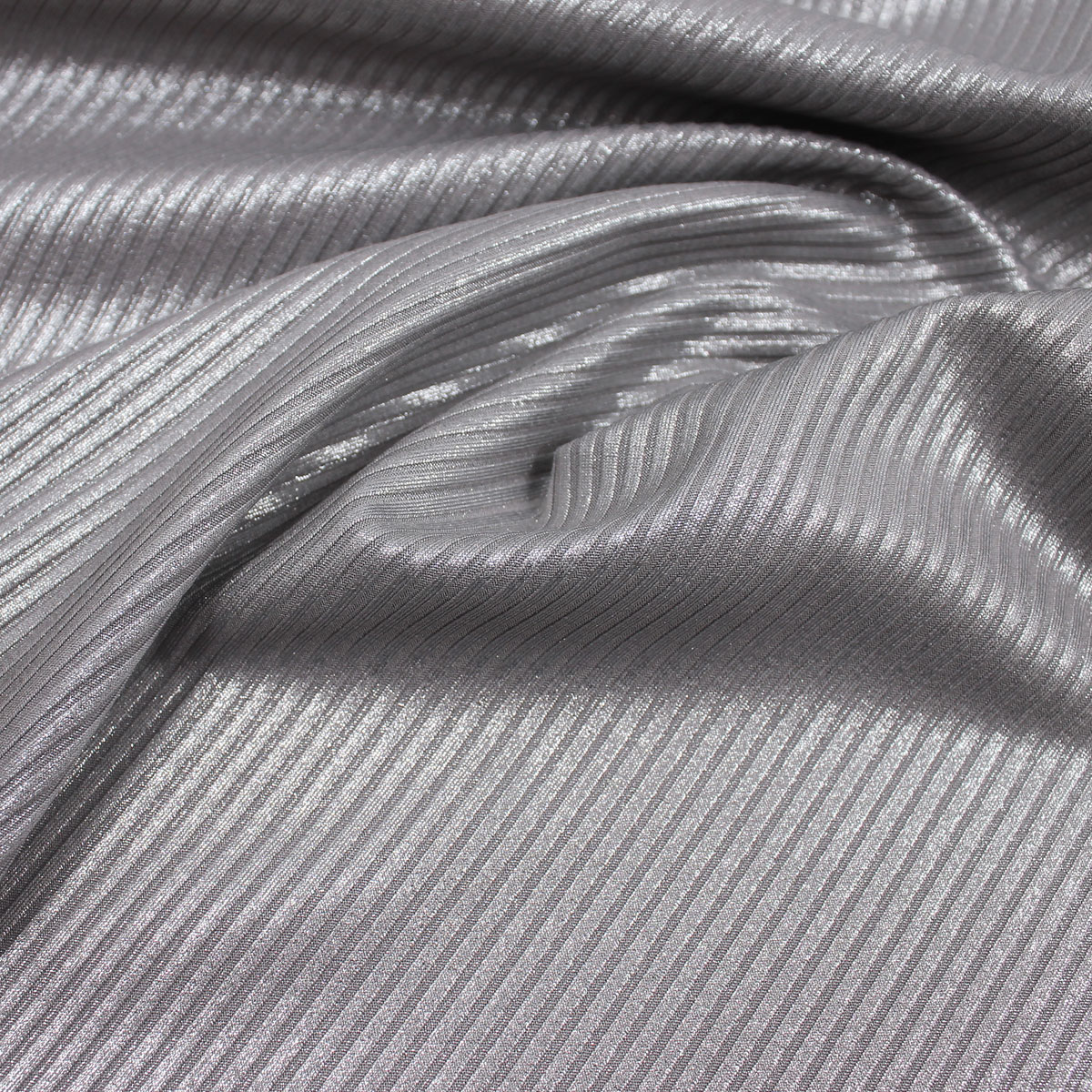 Трикотажная ткань серого цвета отличается плотностью и эластичностью. Она хорошо сохраняет форму изделия, очень приятная на ощупь, гладкая и мягкая.