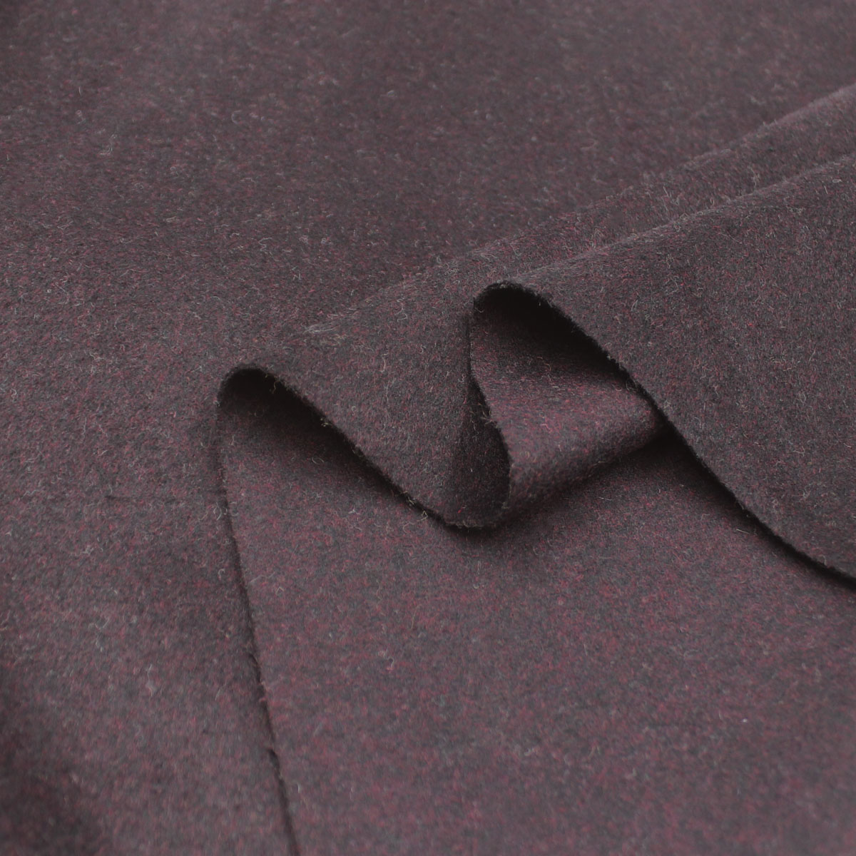 Пальтовая ткань цвета итальянской сливы с составом 90% шерсти и 10% полиэстера предлагает сочетание тепла, которое дает шерсть, и практичности полиэстера.