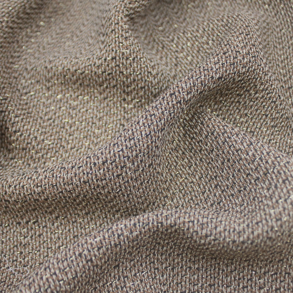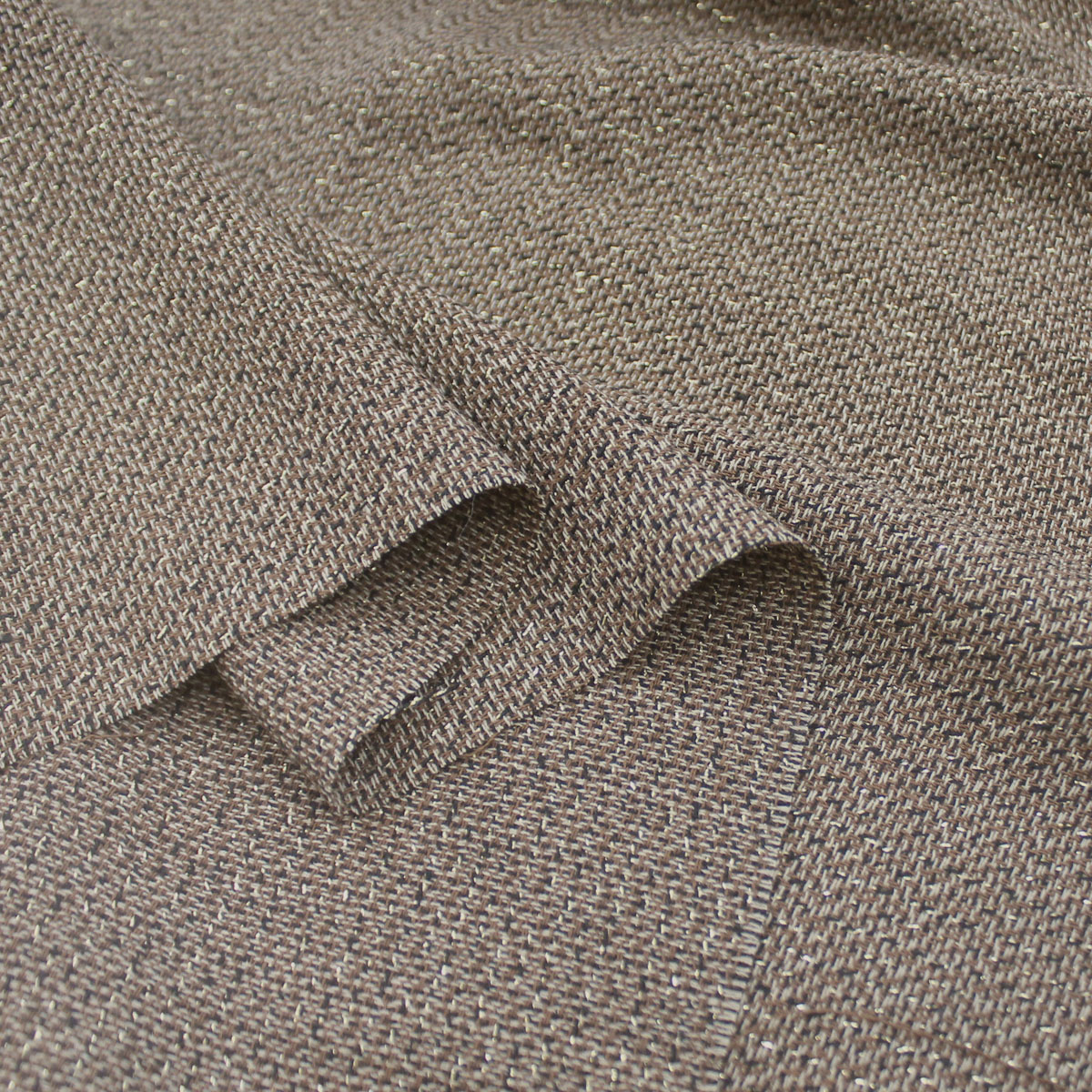 Костюмная ткань коричневая с составом 98% Шерсть, 2% Люрекс представляет собой интересное сочетание материалов, которое обладает следующими характеристиками:
